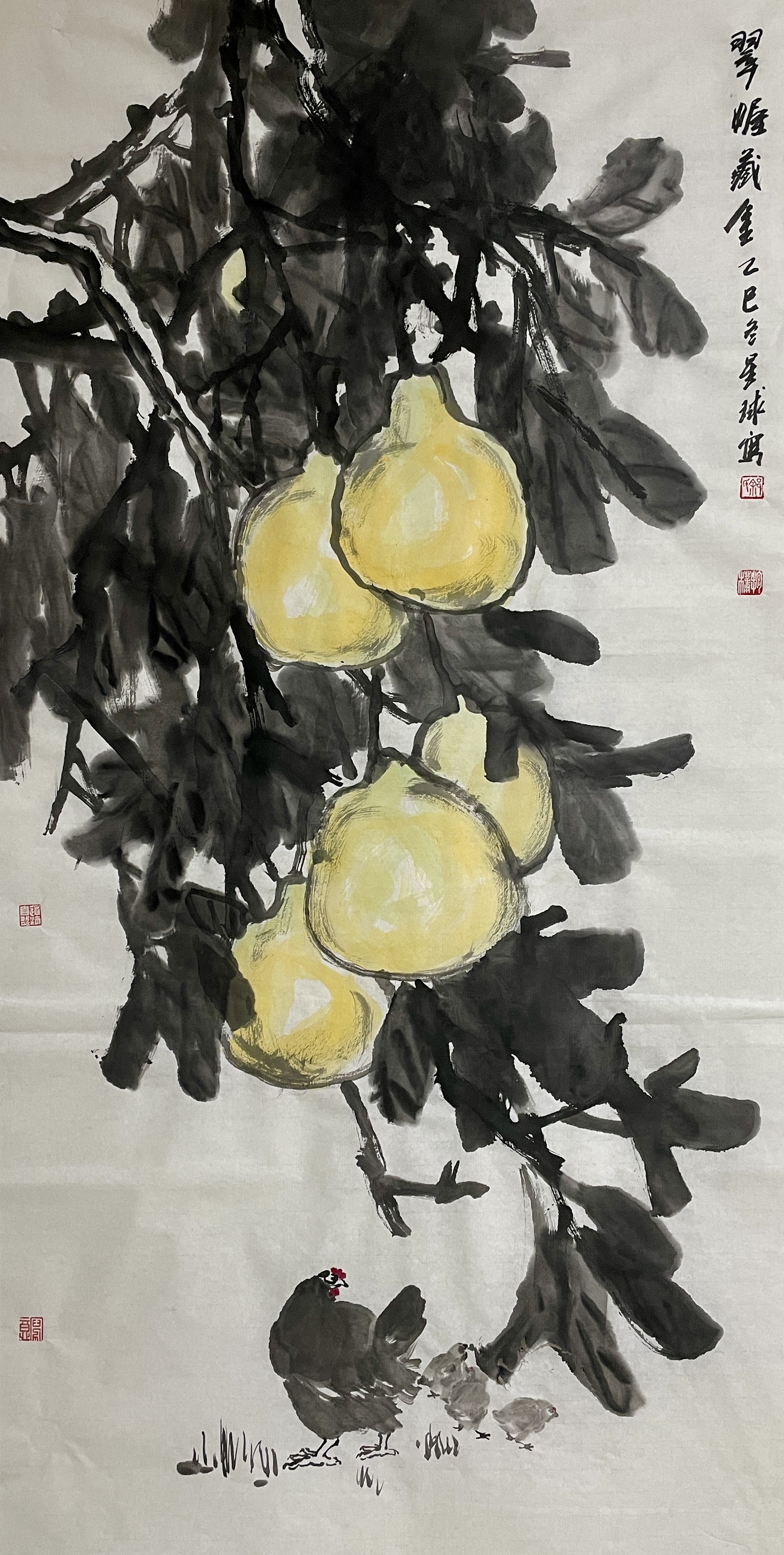 ▲李启志《金风满枝头》138X69cm