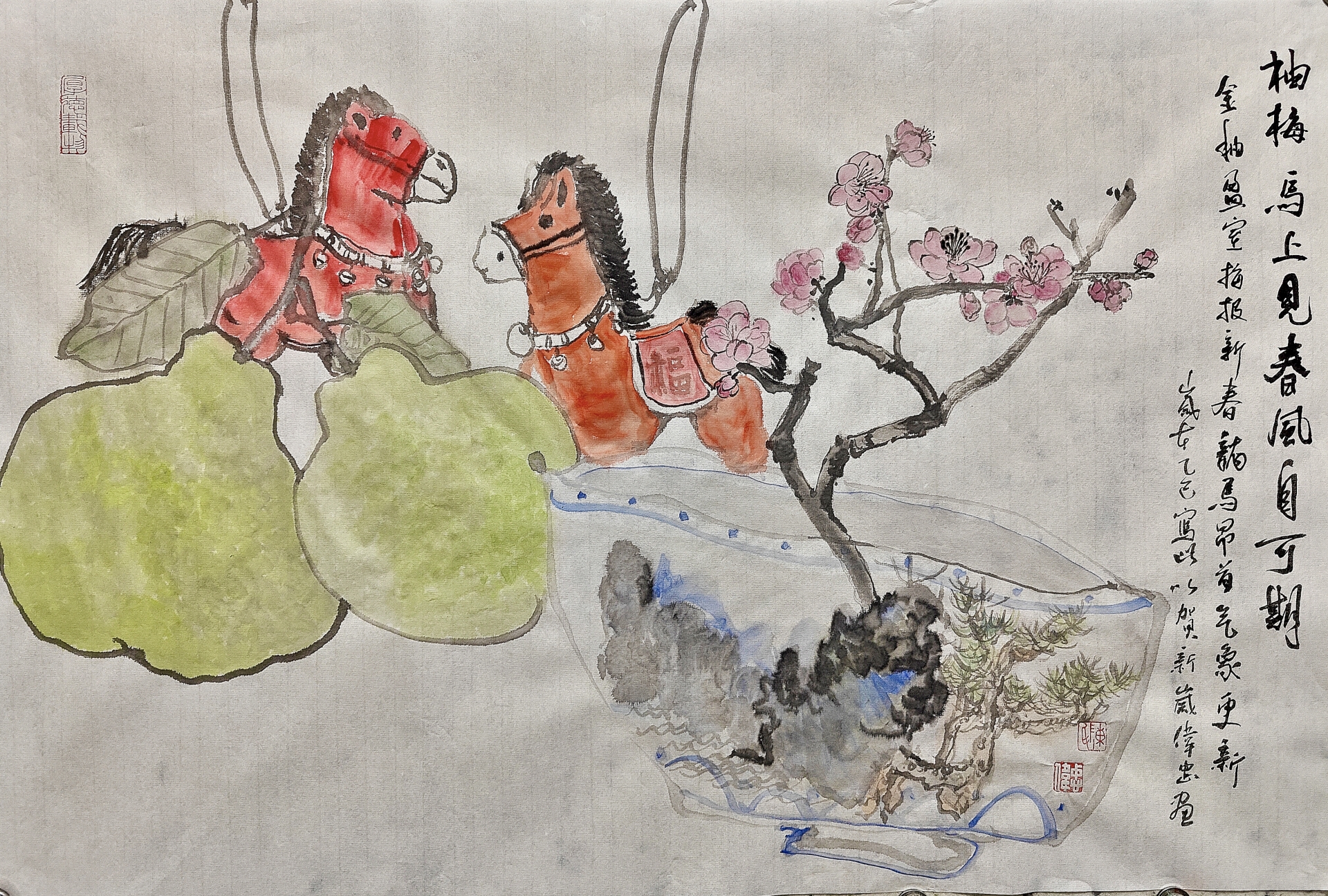 ▲陈伟忠《有梅马上见 春风自可期》68x45cm