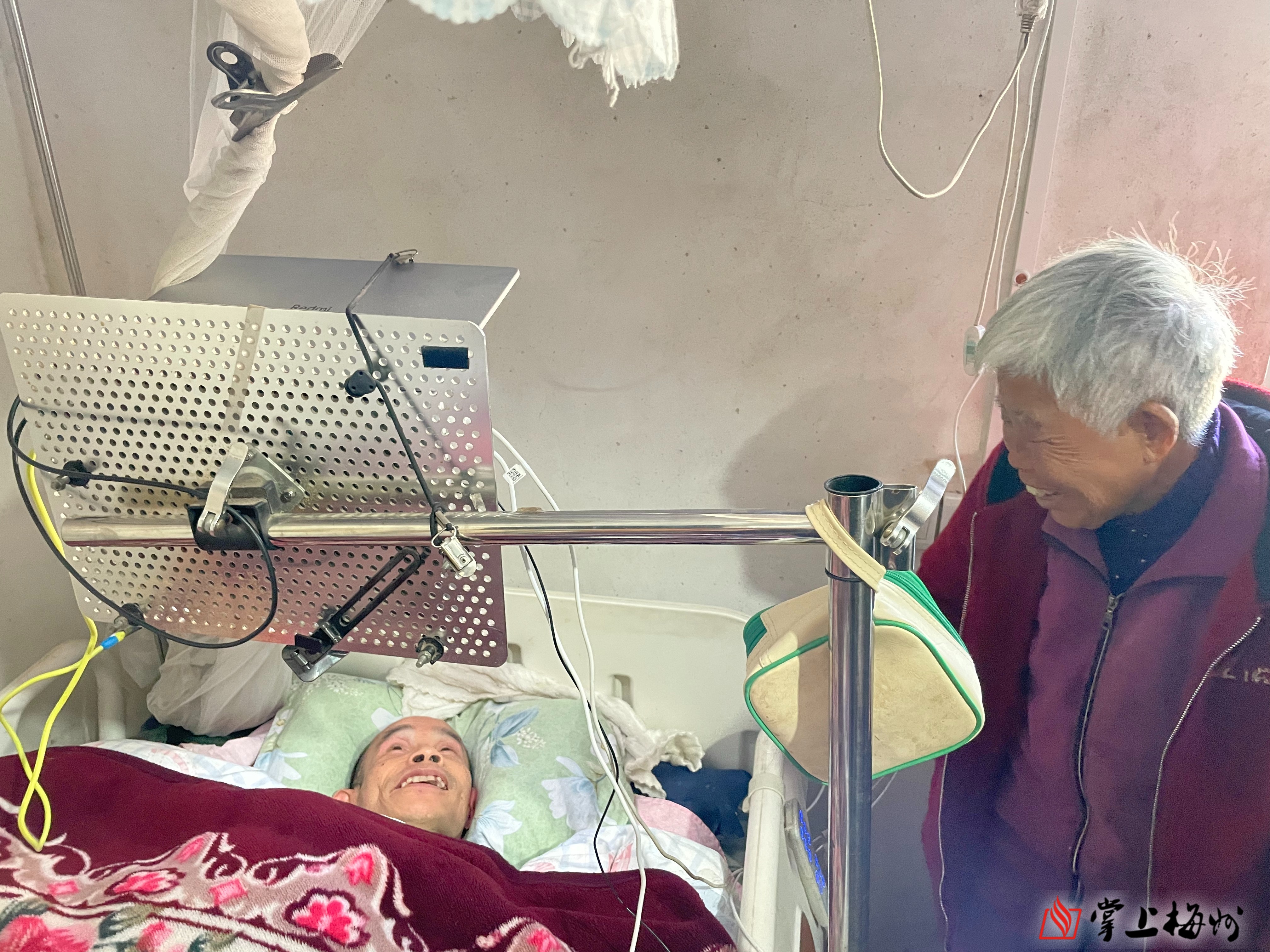 钟展峰与母亲。(吴海清 摄)