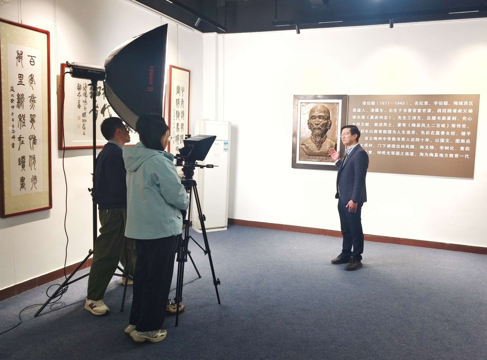 由香港梁挺生博士慈善基金、梅州市林风眠艺术基金会、梅州日报社联合出品,梅州报业新媒体发展有限公司承制,梅州市林风眠研究会、《客家人》杂志社协制的人物纪录片《梅州大先生:梁伯聪》摄制工作进入第二阶段。连日来,摄制组循着先生的生命轨迹,深入梅州中学、梅江区伯聪学校、梅师附小等地实地取景,在琅琅书声与斑驳旧迹间,触摸历史温度,追寻先生留下的精神印记与教育薪火。