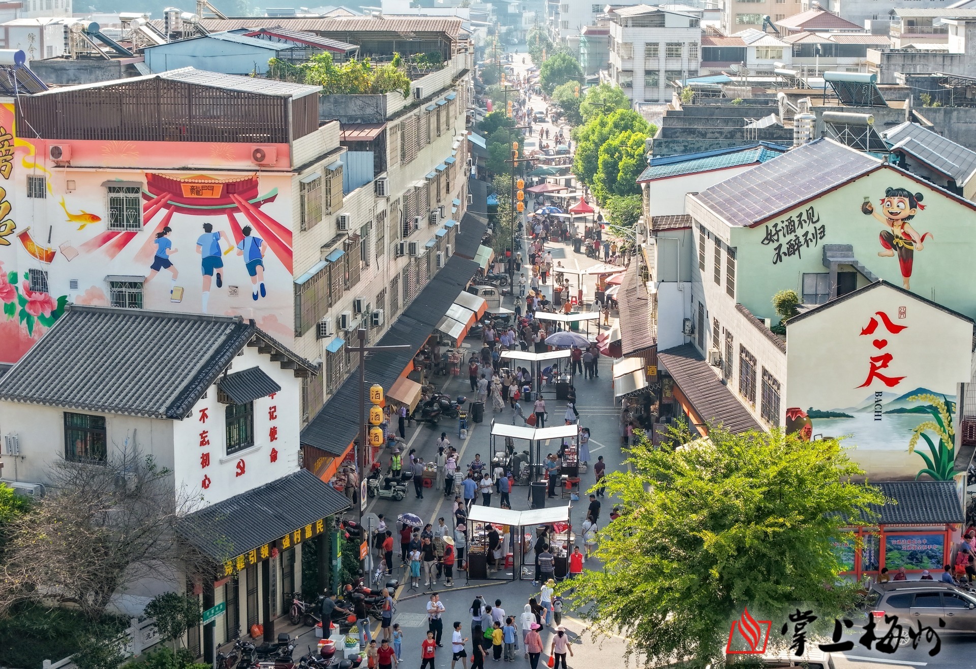 平远县八尺镇示范主街的墙绘融入了“八尺酒香”的特色。(高讯 摄)