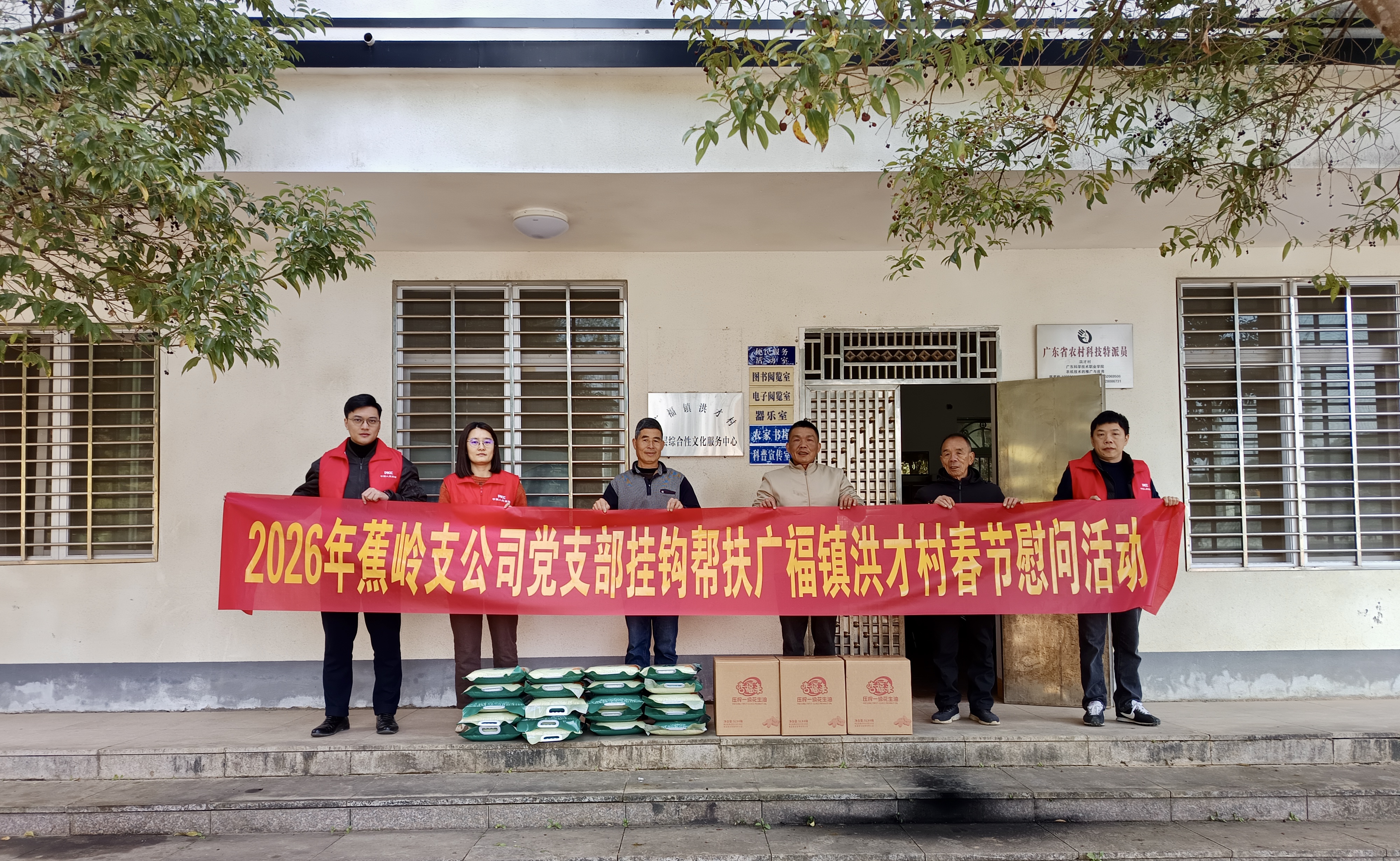 岁末冬寒,情暖人心。在2026年新春佳节即将来临之际,为弘扬党的光荣传统和优良作风,践行“人民保险,服务人民”的初心使命,1月29日上午,人保财险蕉岭支公司党支部组织慰问团队到定点联系村广福镇洪才村开展春节走访慰问活动,为村内失能老人、50年以上党龄的老党员送上节日的问候与祝福,深切传递党组织的温暖关怀。