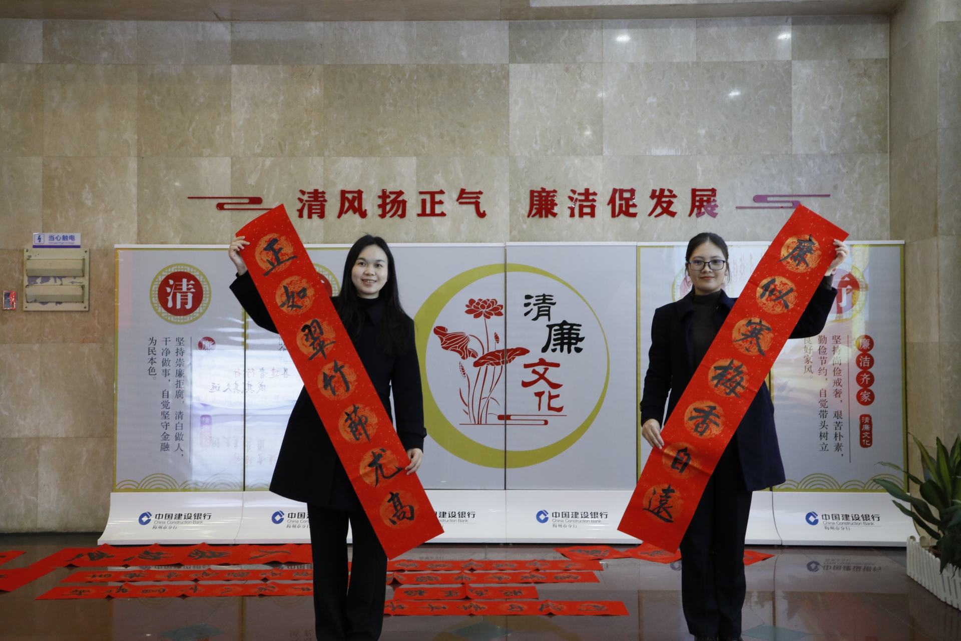 迎春接福写春联,马上平安福连廉。2026年春节即将来临,为丰富职工物质精神文化生活,增加春节愉快气氛,2月2日,建行梅州市分行工会联合纪检组、团委精心策划“迎新春 写春联 送祝福”活动,通过传统书法艺术与清廉文化交融的形式,为城区职工送上新春祝福,以墨香传递企业关怀,用文化凝聚团队力量,绘就了一幅“职工家园”的暖心画卷。