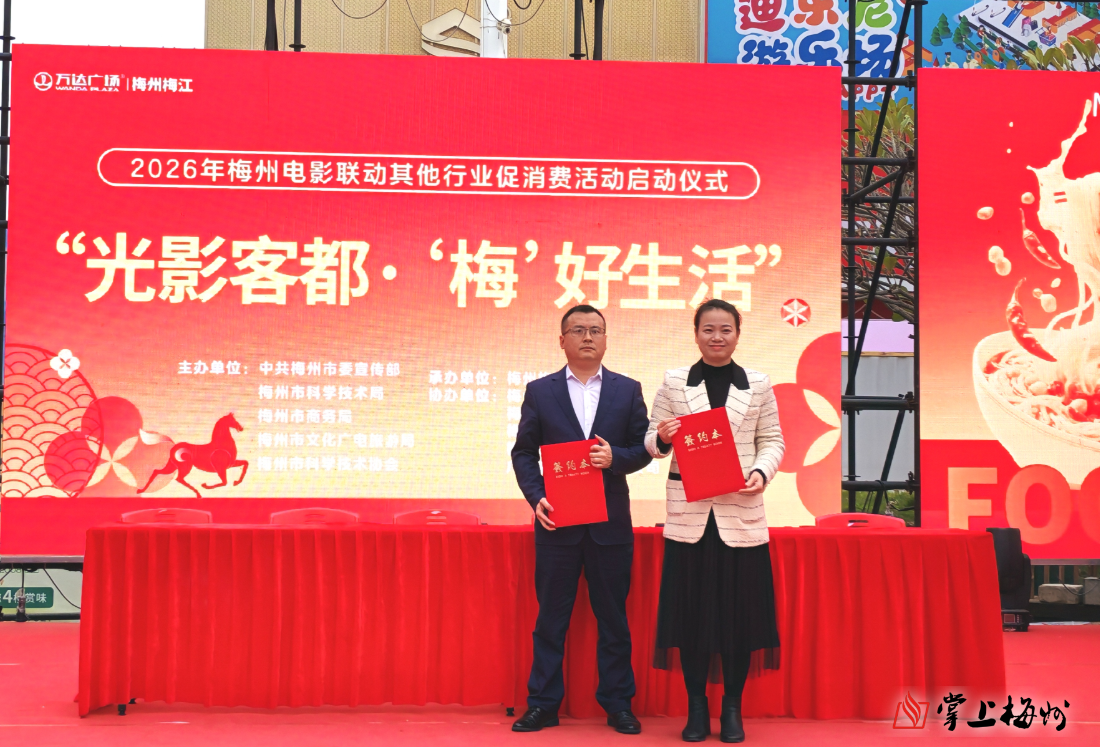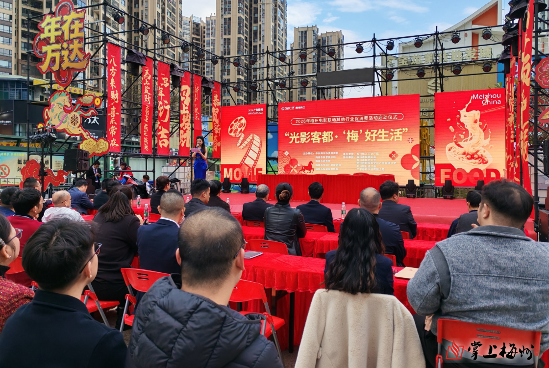 掌上梅州讯 2月9日下午,“光影客都·‘梅’好生活”2026年梅州电影促其他行业消费活动在梅城万达广场启动。