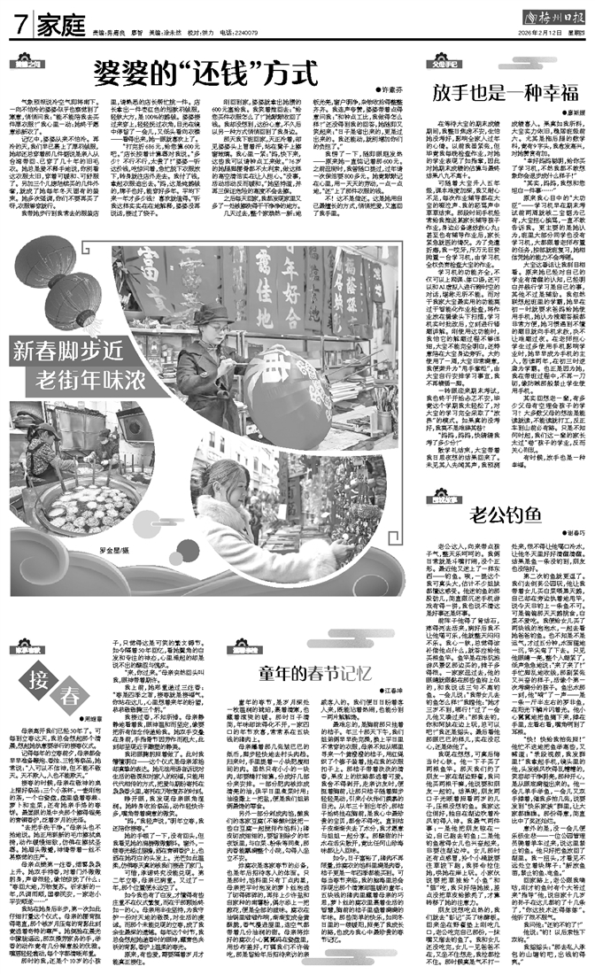 “快!快给我拍张照!”他忙不迭地把鱼举高些,又喊道:“录段视频,我发群里!”我拿起手机,镜头里的他,头发被风吹得乱糟糟的,笑容却干净明亮,那种开心,是从眼底满溢出来的。他一会儿单手举鱼,一会儿又双手捧着,催我多拍几张,说要发到“快乐家族”群里,让大家都瞧瞧。那份得意,简直比中了奖还灿烂。