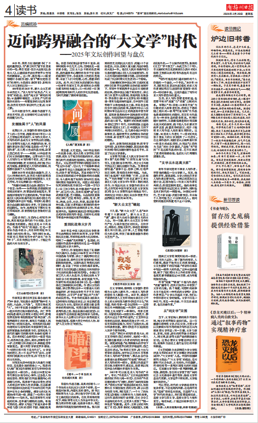 《文艺报》联合北京师范大学文学院评选发布的《2025年文学理论评论高频词》中,“大文学观”入选。中国作协创研部刊文指出:“‘大文学观’的提出,是对新时代社会生活、文化结构、科技创新、传播格局等一系列深刻变化的积极回应。它直面文学现场一系列新问题、新现象、新趋势,旨在将文学置于更广阔的社会文化语境中进行考察,推动文学形态迭代更新、文学边界不断拓展、文学能量积极转化。”