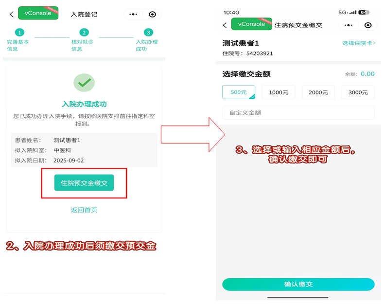 如需使用现金或实体银行卡的患者朋友,请移步至住院收费窗口办理。