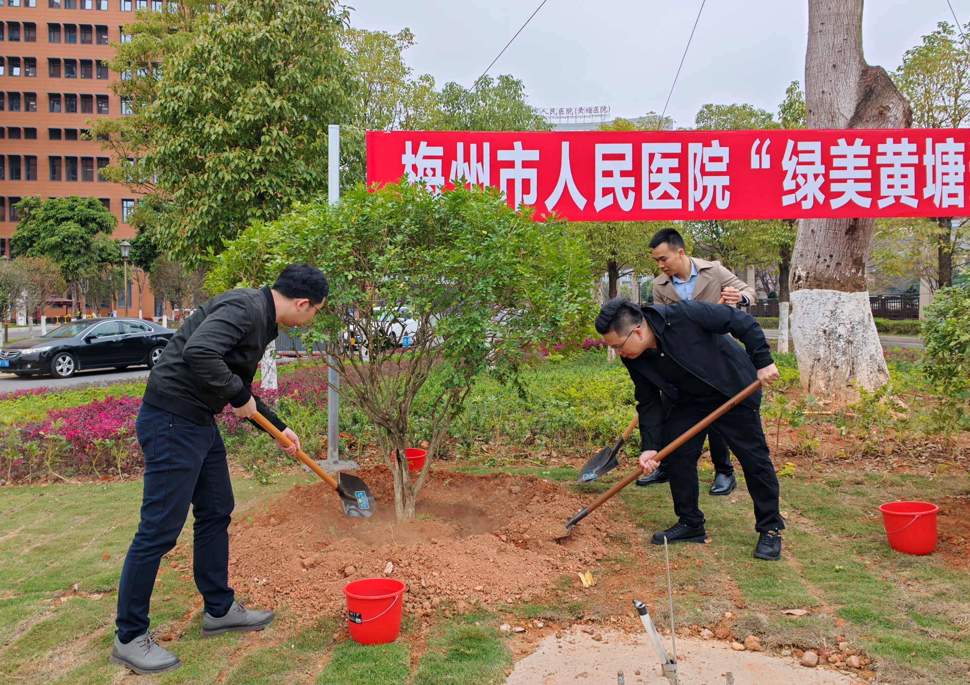 春风送暖,植绿正当时。3月11日上午,在第48个植树节来临之际,梅州市人民医院(黄塘医院)开展了“绿美黄塘迎院庆”植树活动。医院领导班子成员及干部职工近50人参加活动,以爱绿植绿护绿的实际行动,为医院130周年院庆绘就生态底色。