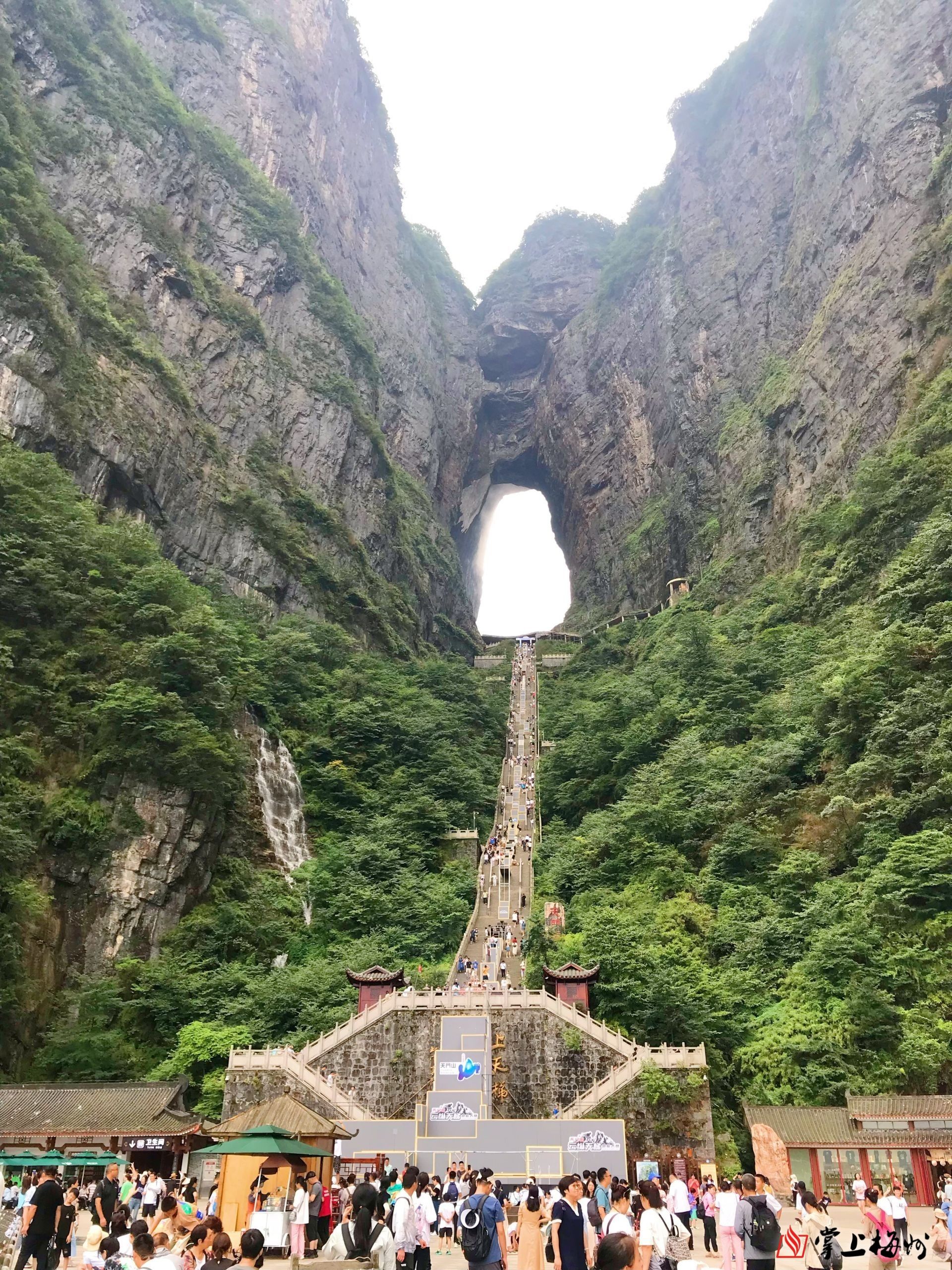 【天门洞】是巨大的穿山溶洞,经常雾气弥漫,往上走到达天门洞的台阶有种登上天庭的感觉。除此之外,还可以在缆车中俯瞰脚下的盘山公路和山中美景。