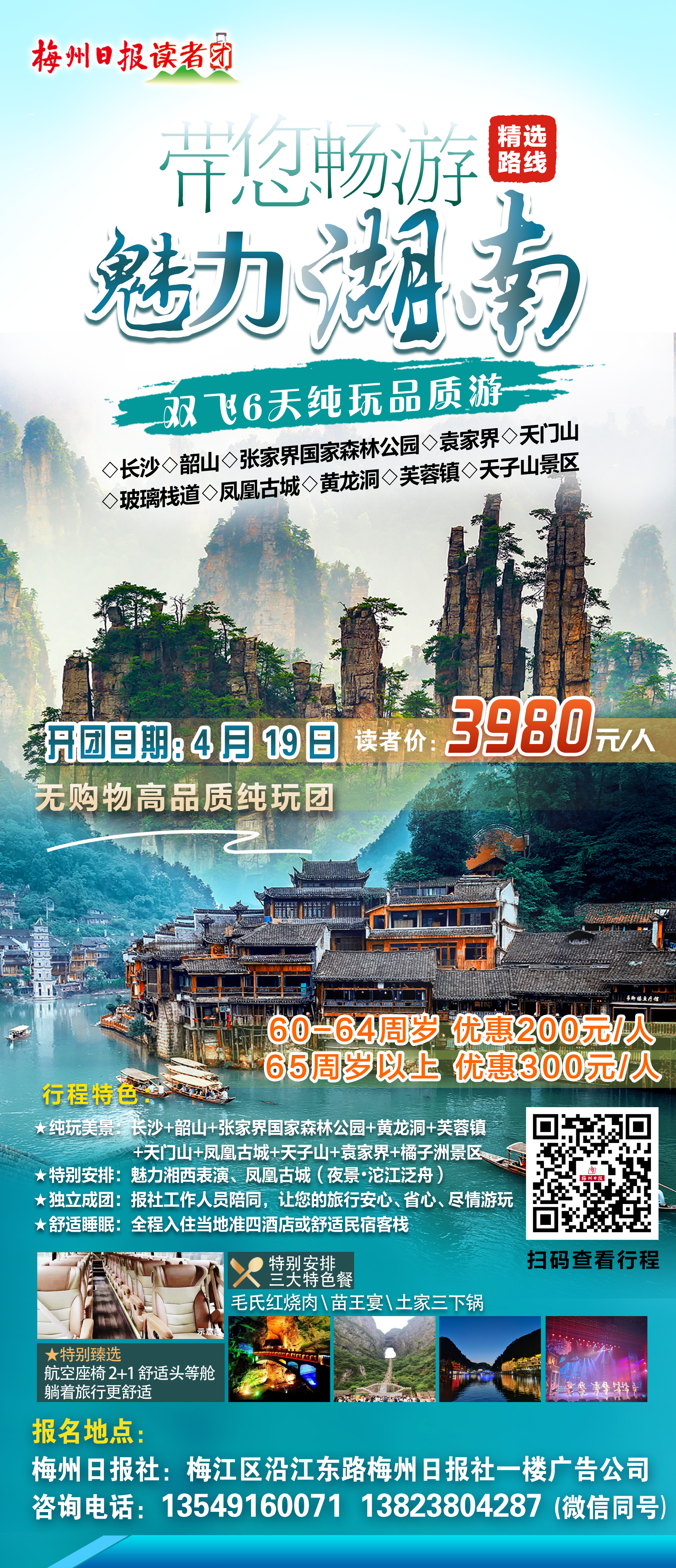 ★纯玩美景:长沙+韶山+张家界国家森林公园+黄龙洞+芙蓉镇+凤凰古城+天门山国家森林公园+橘子洲景区