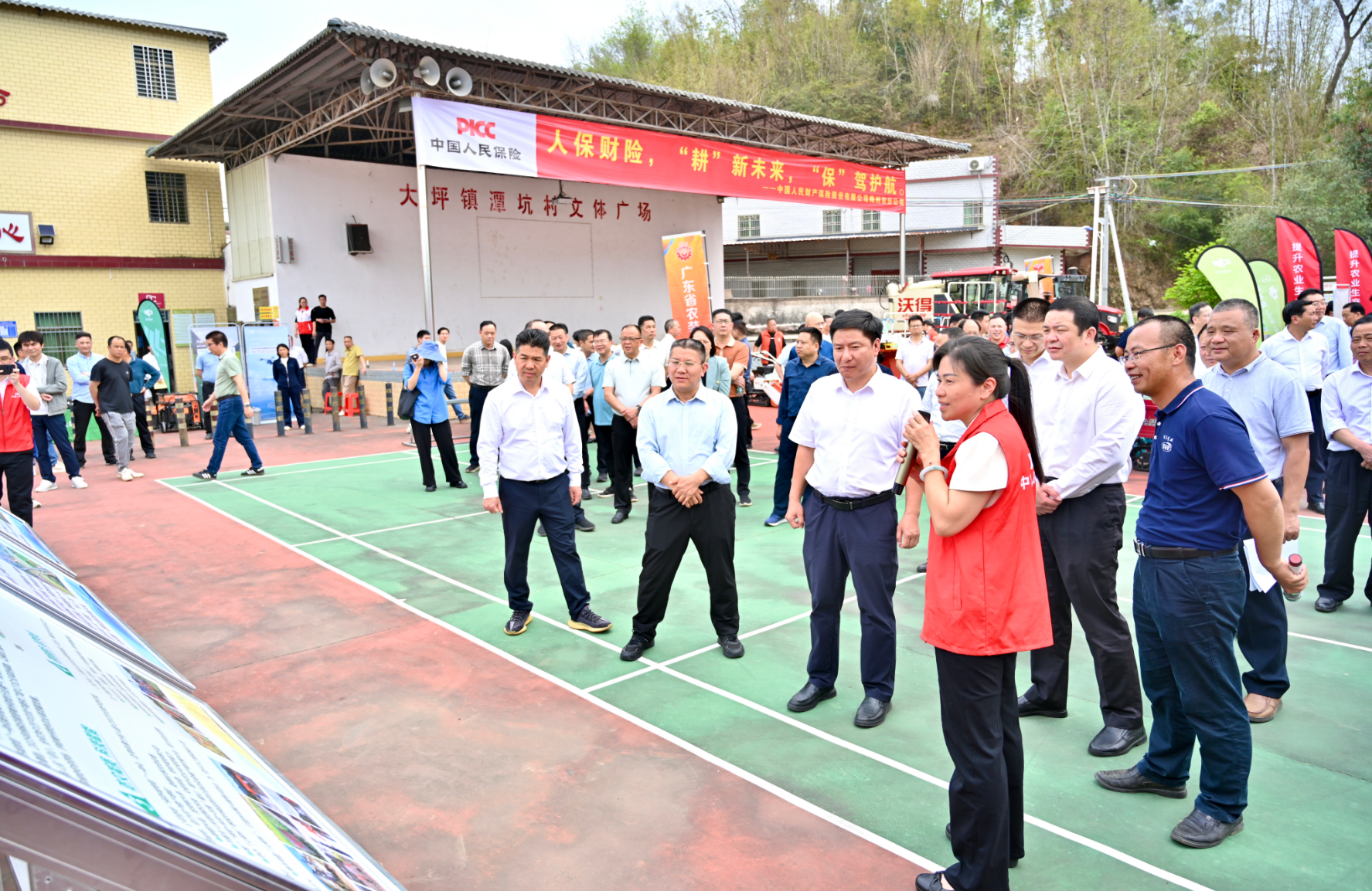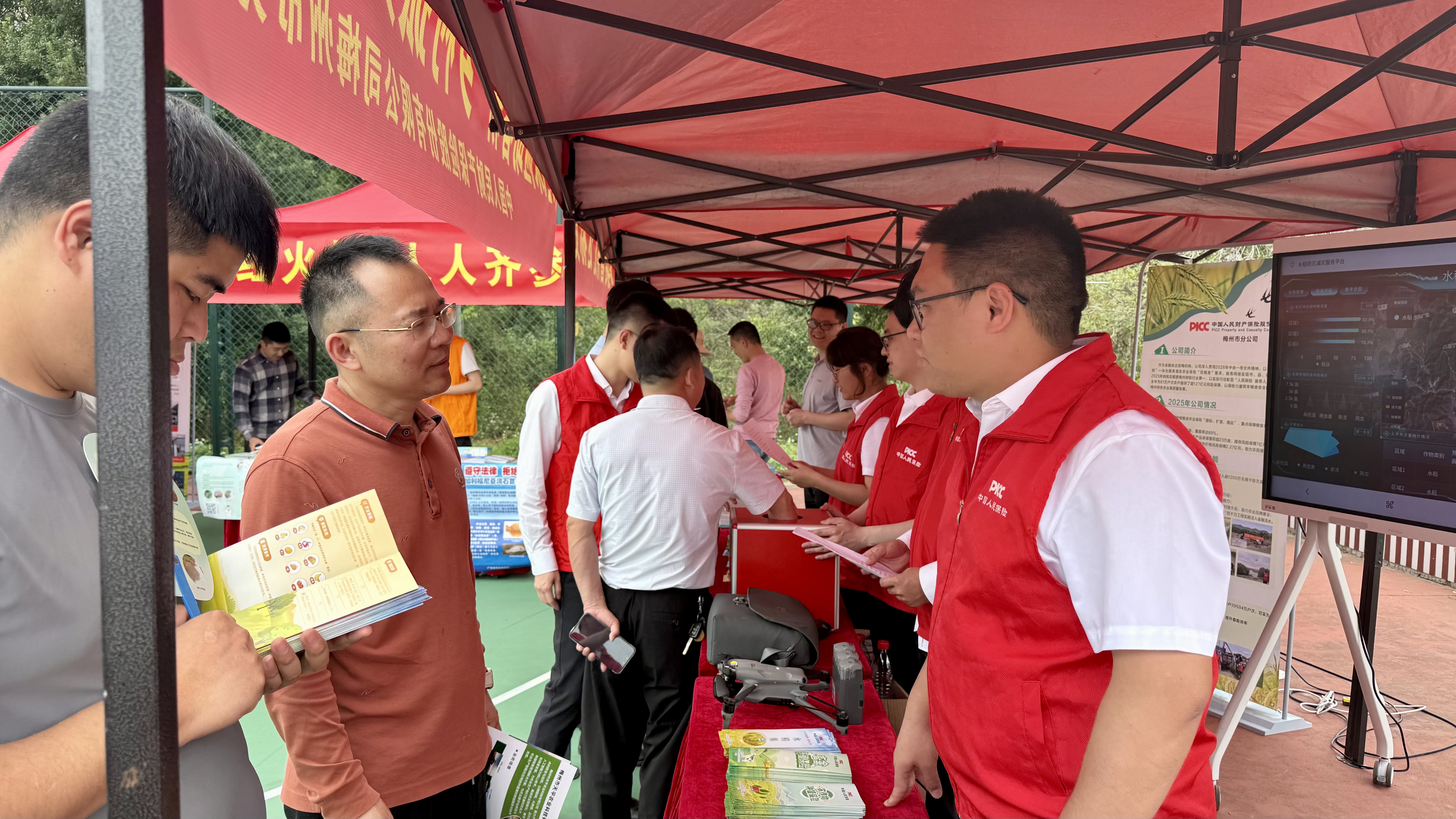 活动现场,与会人员深入田间地头,实地观摩了春耕机械化作业、紫云英还田作业现场,新品种、新农机、名特优新农产品展示区以及撂荒耕地复耕复种现场。人保财险梅州市分公司围绕展板内容,向与会领导和嘉宾详细介绍了公司发挥保险保障作用、护航梅州“三农”发展的具体实践;重点展示了公司在防灾防损、科技赋能等方面的创新举措,全面呈现了农业保险在稳定农业生产、保障农民收益、促进乡村振兴中的关键作用。该公司还设置了咨询服务台,组织工作人员向农户及种植企业宣传农业保险政策、科普防灾减损知识,并主动对接农户需求,耐心讲解政策性农业保险与商业性保险的组合保障方案,现场解答农户关于保障范围、理赔流程等方面的疑问,真正做到“政策送上门、服务送到家”。