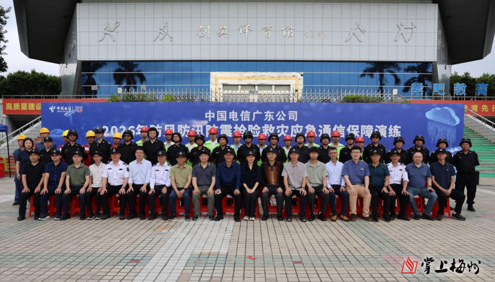 为全面检验应急通信保障实战能力,强化跨行业和友商协同作战水平,3月26日,中国电信广东公司在梅州市剑英体育馆举行2026年防风防汛防震抢险救灾应急通信保障演练。本次演练由中国电信广东公司云网运营部主办,中国电信广东公司无线网络中心、中国电信梅州分公司承办,中国电信佛山分公司、梅州供电局、中国联通梅州分公司等单位参与实战演练,活动邀请广东省通信管理局、梅州市工业和信息化局、梅州市应急管理局、梅州市水务局等相关单位领导到场观摩指导。
