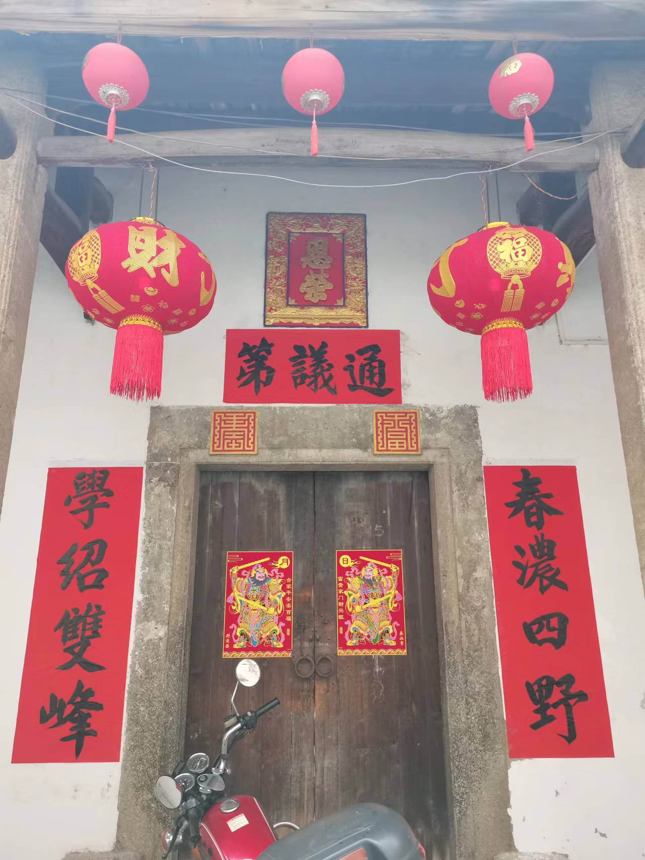 在北街和长春井巷有两位清朝进士门第,一位是嘉庆年间肇庆府廉吏张京泰故居孝友堂,大门对联“家传孝友,国庆文明”,据说张京泰于嘉庆十四年(1809)中进士那年,恰逢嘉庆皇帝50大寿庆典,举国欢庆。另一位是晚清外交大臣饶宝书祖屋通议第,大门对联是“春浓四野,学绍双峰”,从屋名可知,该屋出过通议大夫,从四品文官。饶宝书的弟弟饶宝畴与兄长是光绪己丑同科举人。该对联的下联比喻兄弟在学业上如双峰并峙,文脉绵长。听前辈讲,饶宝书12岁那年考秀才,天降大雨,低洼的长春巷被水淹没,他只好由大人背着上考场。