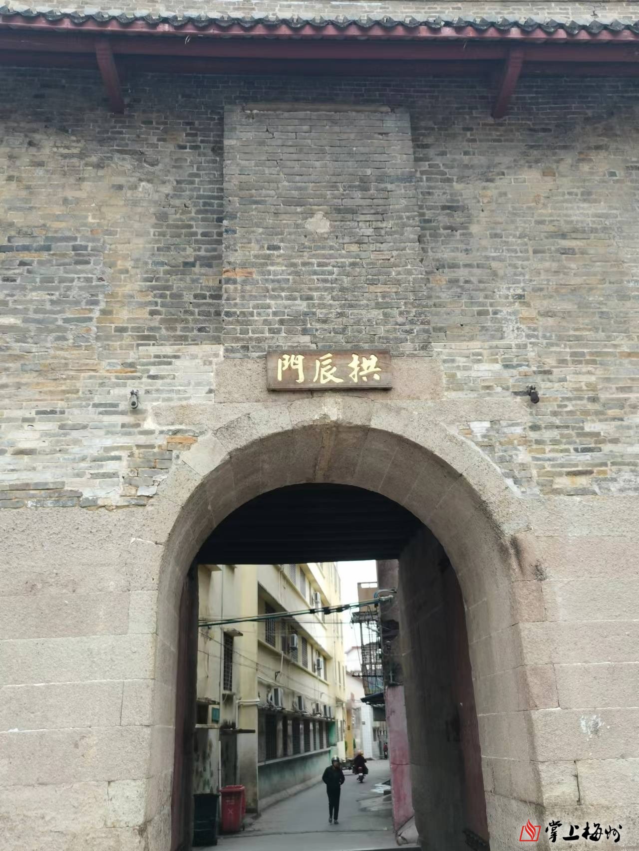 北街的尽头是古城门,由嘉庆十五年任知县的仲振履改建,是曲尺形重门,又称瓮城,命名拱辰门,含北斗七星之意。翻开历史,兴宁古城墙发挥了安全、抗敌的保护作用。咸丰九年(1859)三月二十一日,太平军重重包围兴城,知县彭蕴炜领兵固守,城内居民半数逃离,留城者万人,挤满了祠堂寺庙。太平军用地雷炸城墙,城墙依然固若金汤;城下挖地道,皆因水势腾涌而止。围攻近半月,援军赶到,太平军败走,兴城岿然不动,未遭践踏。