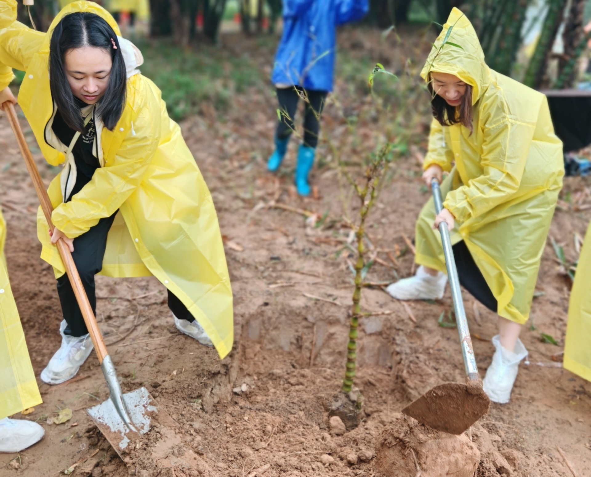 活动当天,女职工们首先来到松口镇南下村开展植树活动。大家分工协作、默契配合,挥锹挖坑、扶苗培土、浇水定根,亲手栽下棵棵绿竹,为绿美梅州生态建设贡献一份力量。植树现场,女职工们以饱满的热情投入劳动,既锻炼团队协作能力,也深刻体会到生态文明建设的实践意义。
