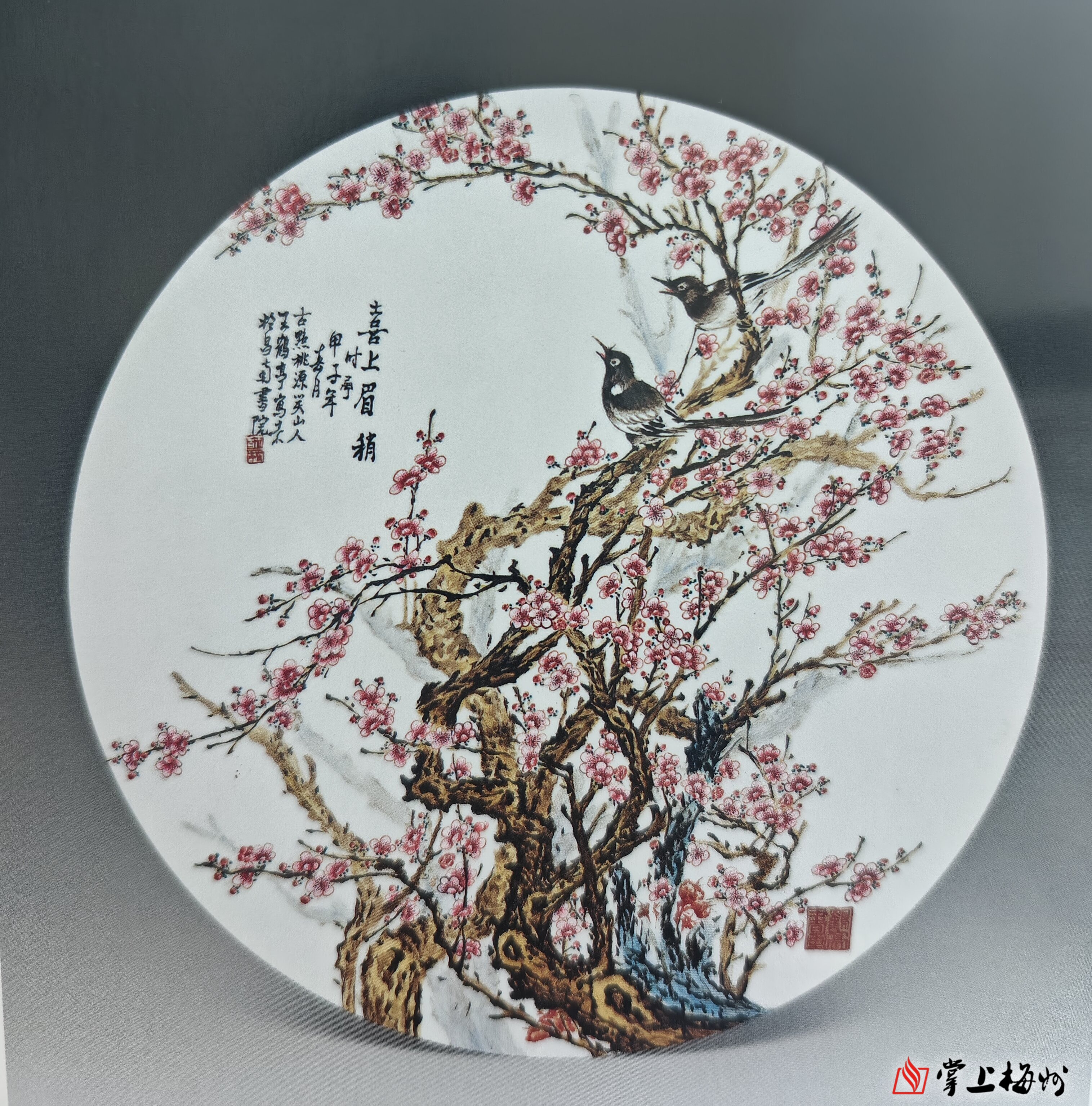 ▲粉彩喜上眉梢图瓷板 王鹤亭(1948年) 宽58厘米