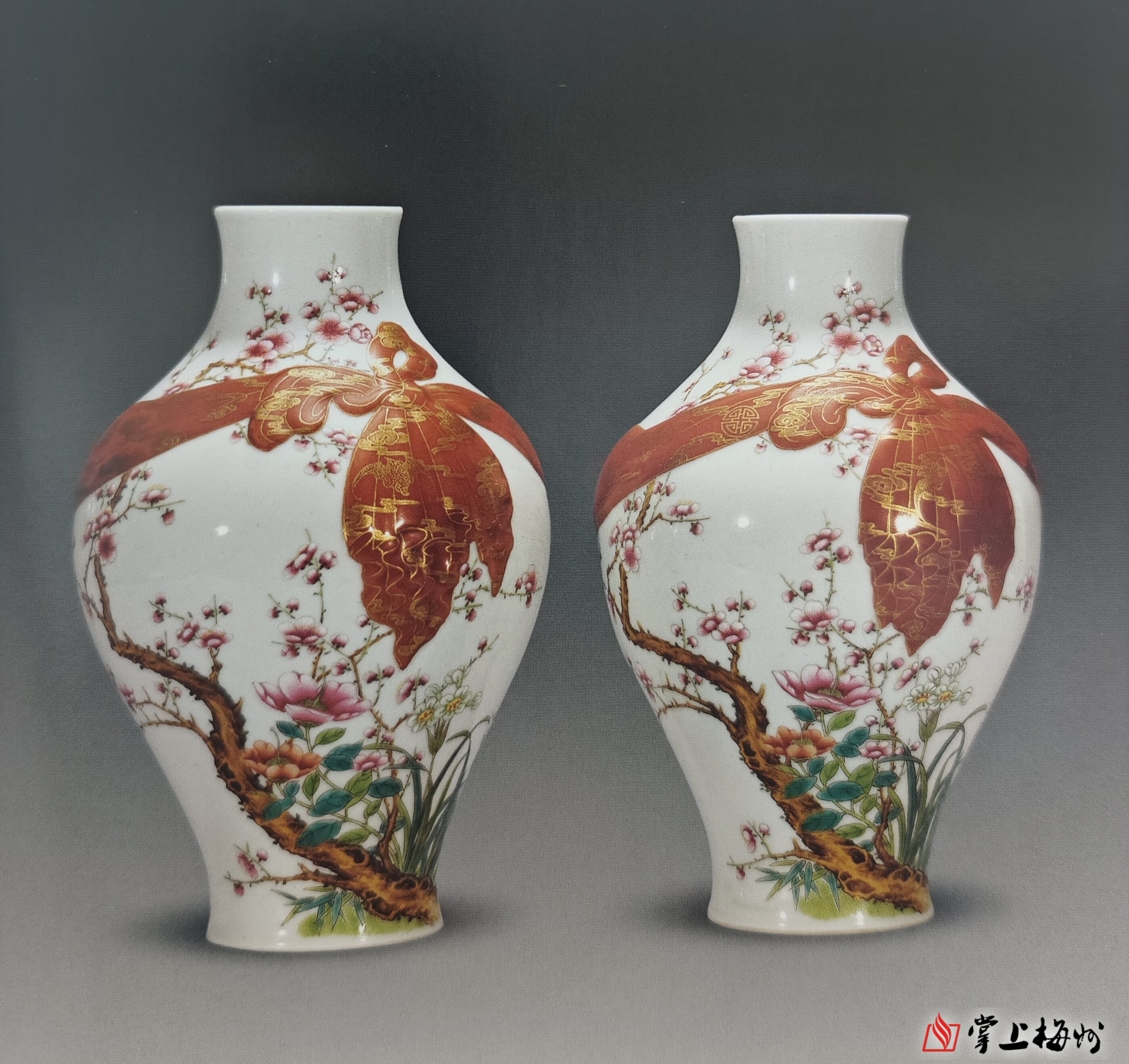 ▲粉彩梅兰纹对瓶 民国(1916年) 高22厘米