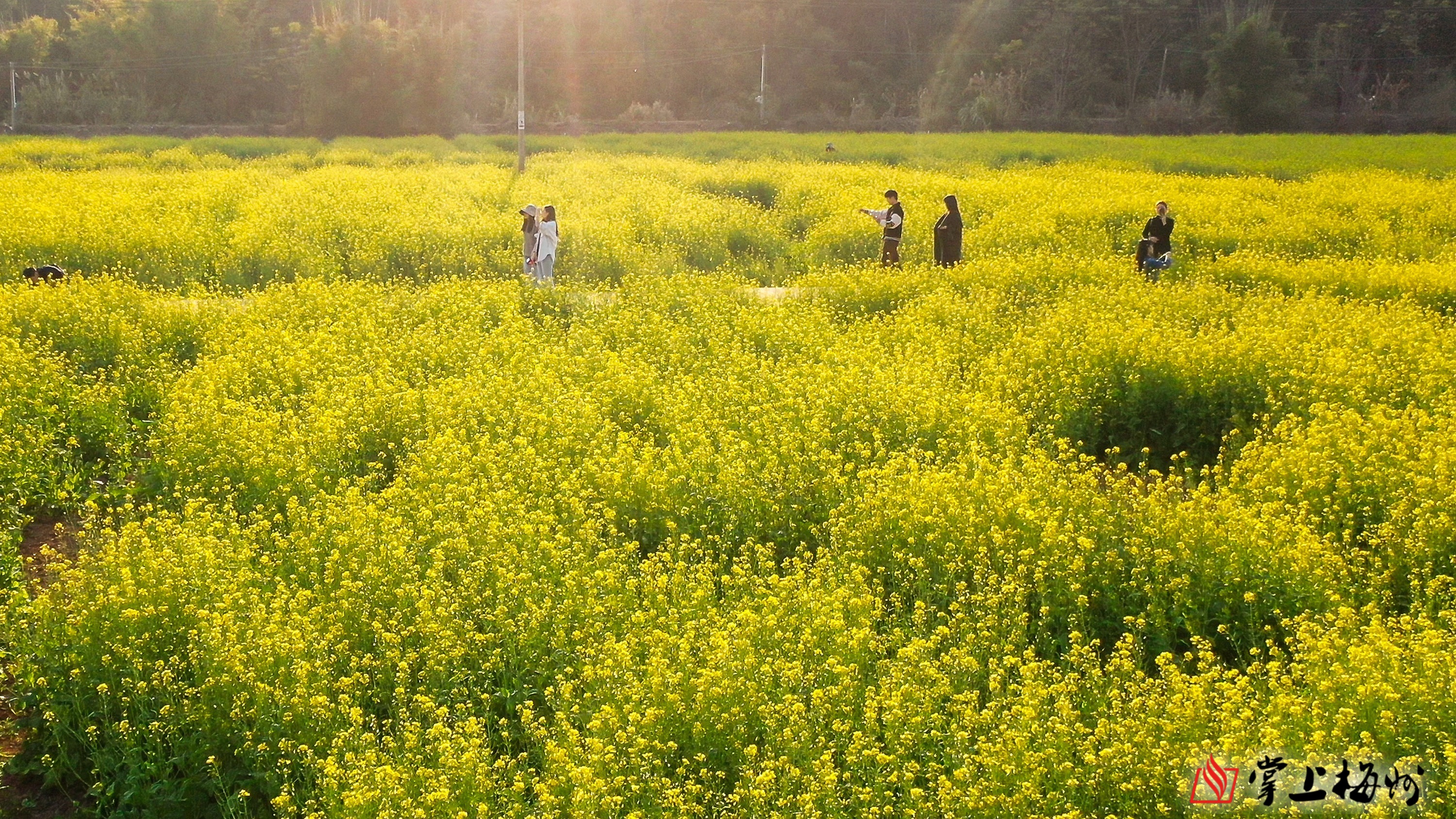 梅县区白渡镇悦来村百亩油菜花竞相绽放。(连志城 摄)