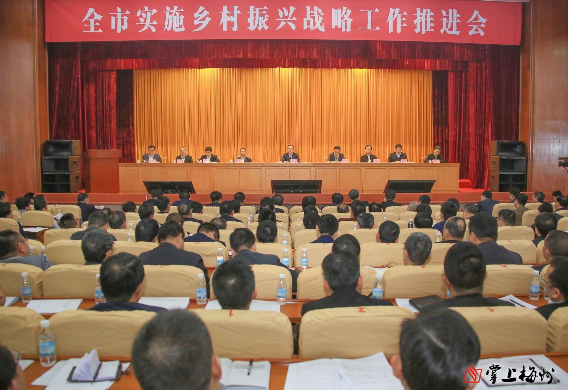 掌上梅州讯 15日上午,全市实施乡村振兴战略工作推进会在市委礼堂召开。会议以习近平新时代中国特色社会主义思想和党的十九大精神为指导,全面贯彻落实中央农村工作会议、全省实施乡村振兴战略工作推进会和省委十二届六次全会、市委七届六次全会以及市两会精神,总结2018年全市乡村振兴工作,研究部署2019年工作任务。市委书记陈敏出席会议并讲话,市长张爱军主持会议,市政协主席陈建青出席会议。