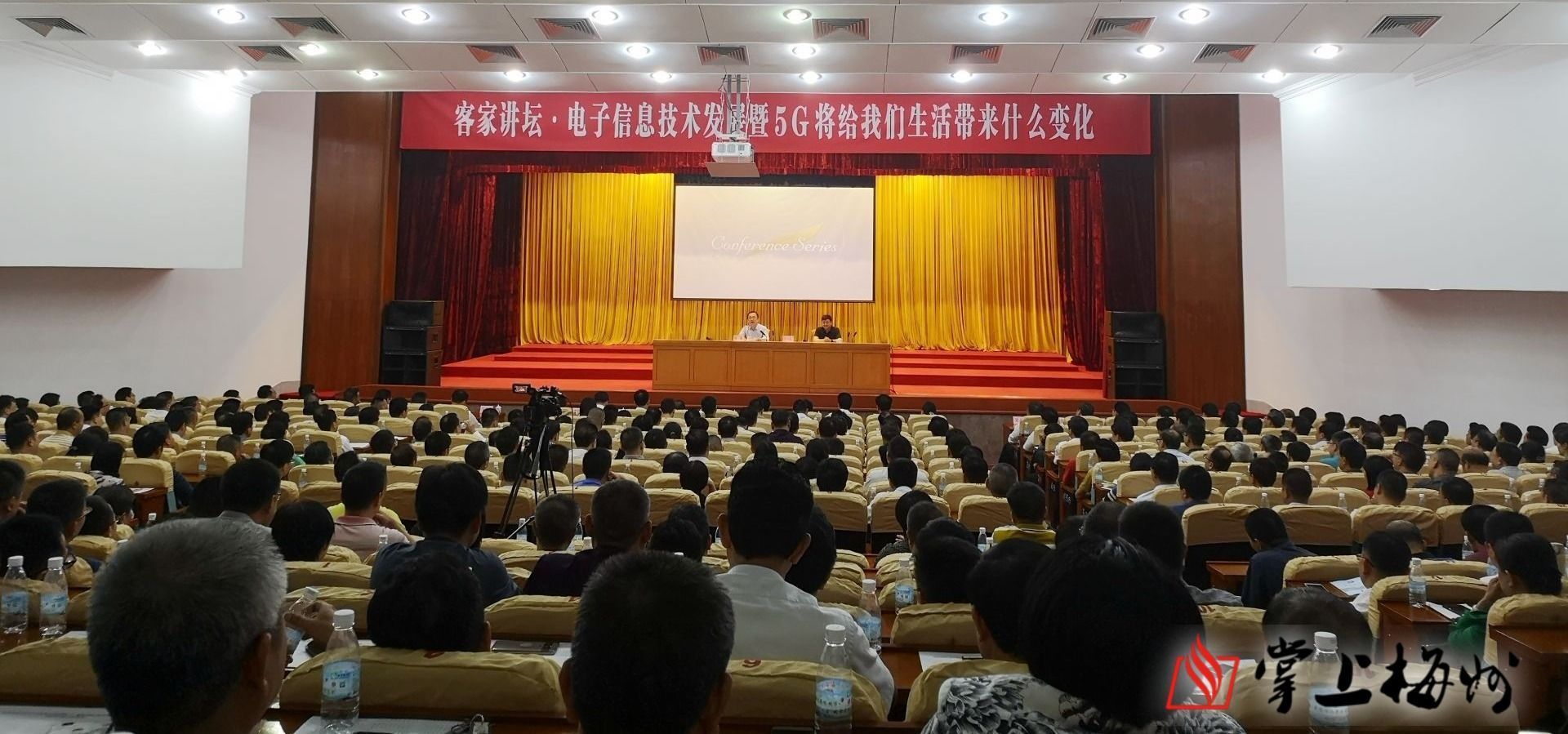 在客家讲坛上,梅州优秀乡贤、闻泰科技董事长张学政围绕“5G”作知识分享。