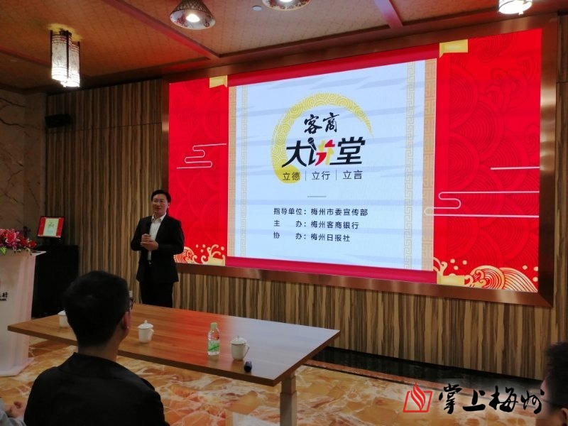 嘉应学院客商研究院常务副院长孙博也为客商大讲堂的举办点赞。他说,该平台有利于促进客商情谊交流,提升客商综合素质,整合融通客商资源,以“学习影响梅州、学习推动梅州、学习改变梅州、学习成就梅州”的新思路、新模式,探索出在新环境下梅州企业发展的新道路。