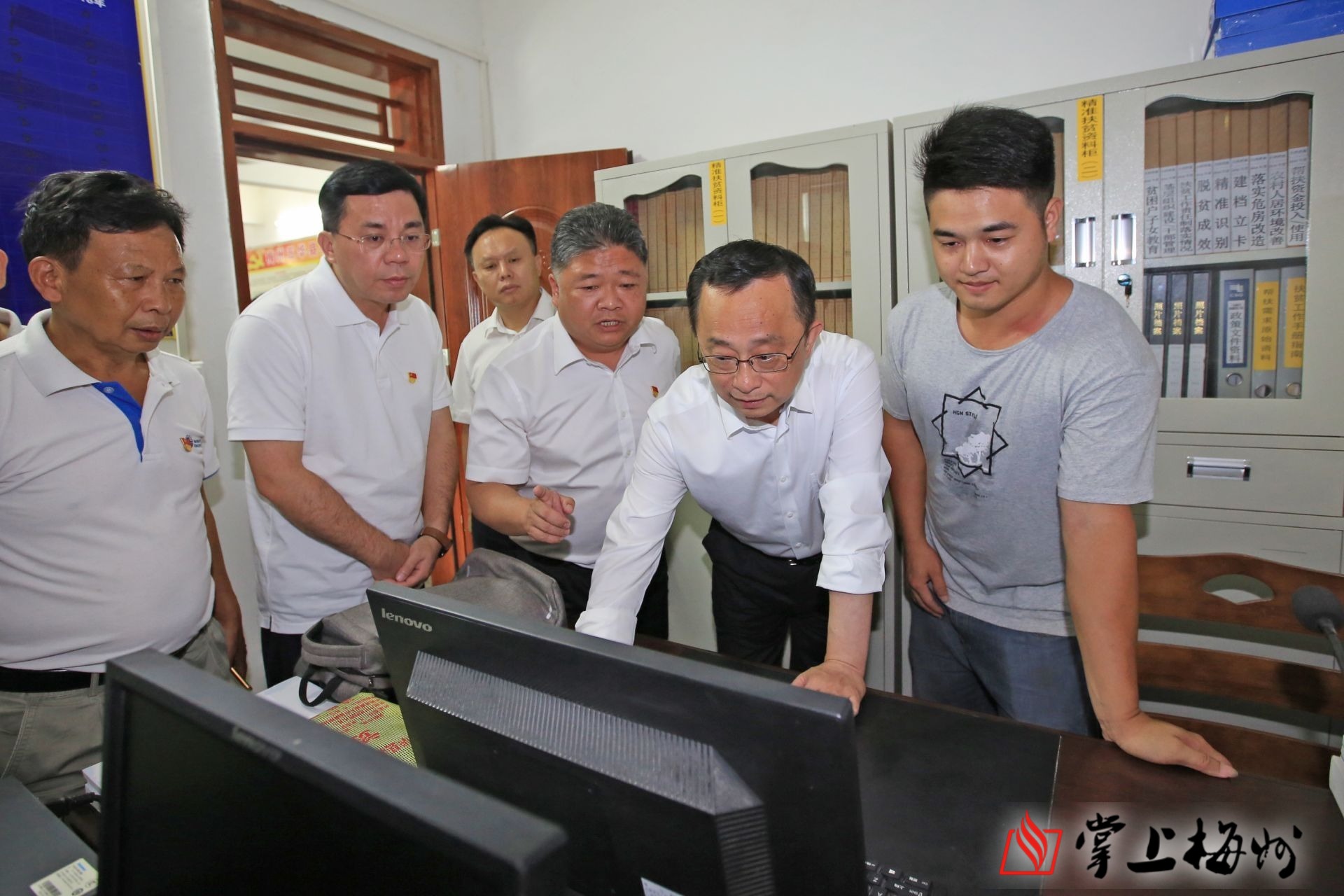 在横陂镇西湖村村委,陈敏仔细了解当地的精准扶贫、村集体经济发展等情况。