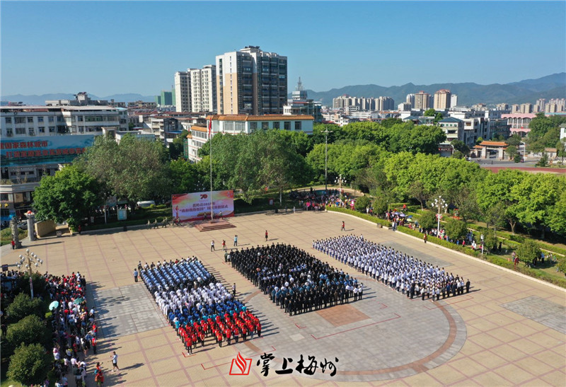 五星红旗在梅城院士广场升起。(高讯 摄)