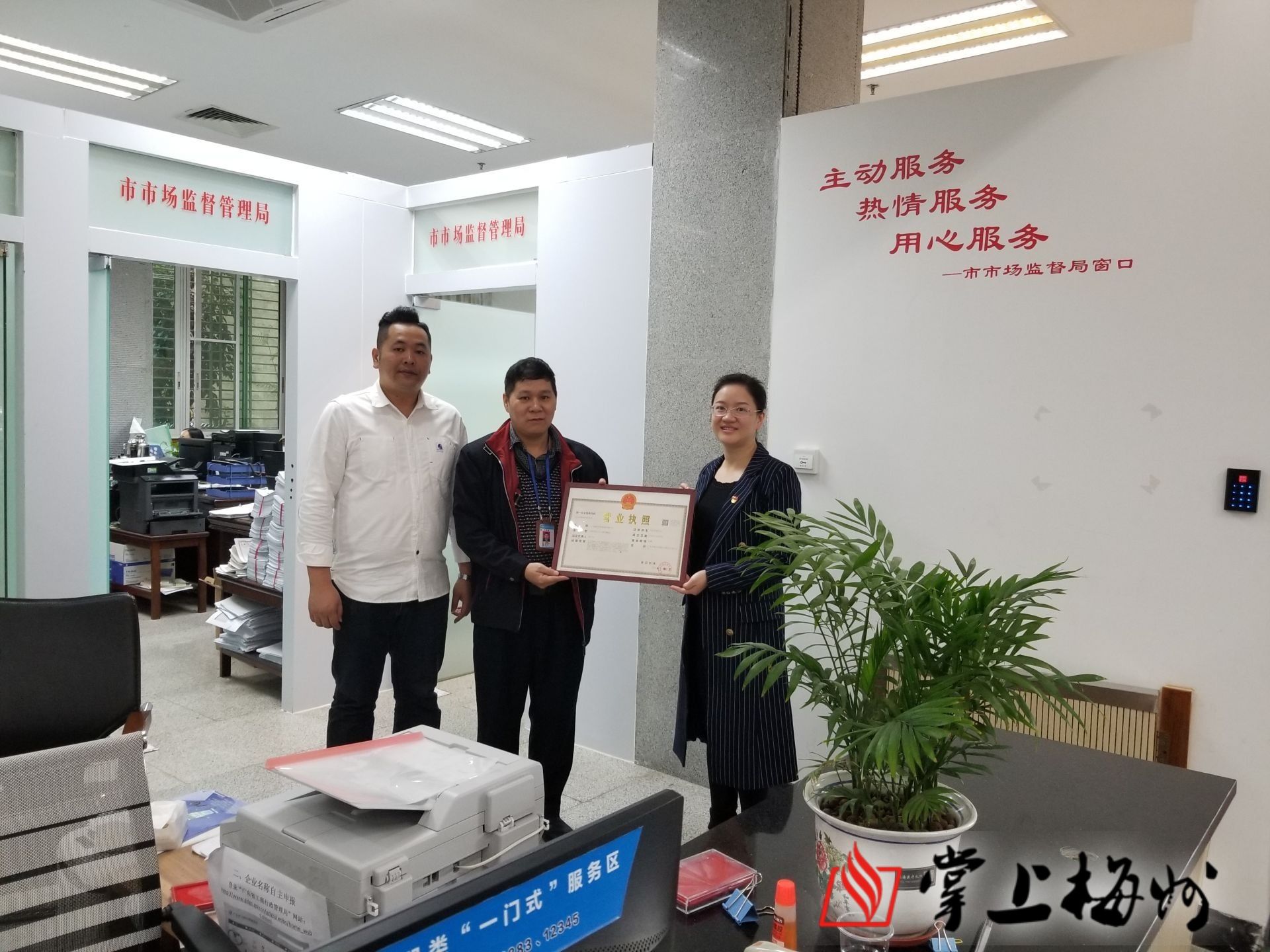 掌上梅州讯 记者从市市场监管局获悉,我市新组建的4家市管国有企业——广东金雁工业集团有限公司、广东嘉城建设集团有限公司、广东嘉应控股集团有限公司、广东客都文旅有限公司于21日办理完成企业登记手续,领取营业执照。