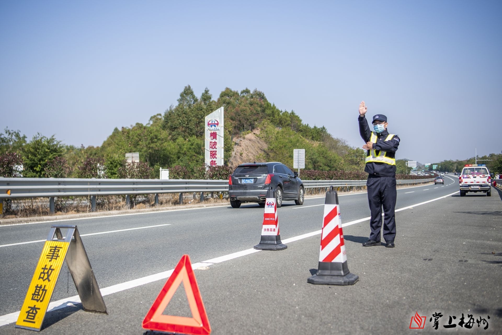 今年,梅州公安积极落实高速公路交通安全防控“四个一”体系要求,根据划定的高速公路“1、3、5分钟”快速反应点段和“15、30分钟”高效处置区,分类分级加强驻点警力前置和巡查管控力度。在联勤联动机制下,各部门加强协同处置,第一时间发现交通警情,综合采取远端提示、近段疏导、分流绕行等措施,均衡路网流量,缓解交通拥堵。
