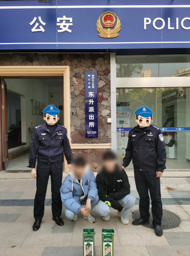 2月13日,东升派出所在梅江区梅水路一小区地下停车场抓获两名涉嫌盗窃的嫌疑人,追回茅台虎年生肖酒两瓶,挽回事主经济损失6400元。目前,公安机关已对两名违法行为人依法作出行政处罚。