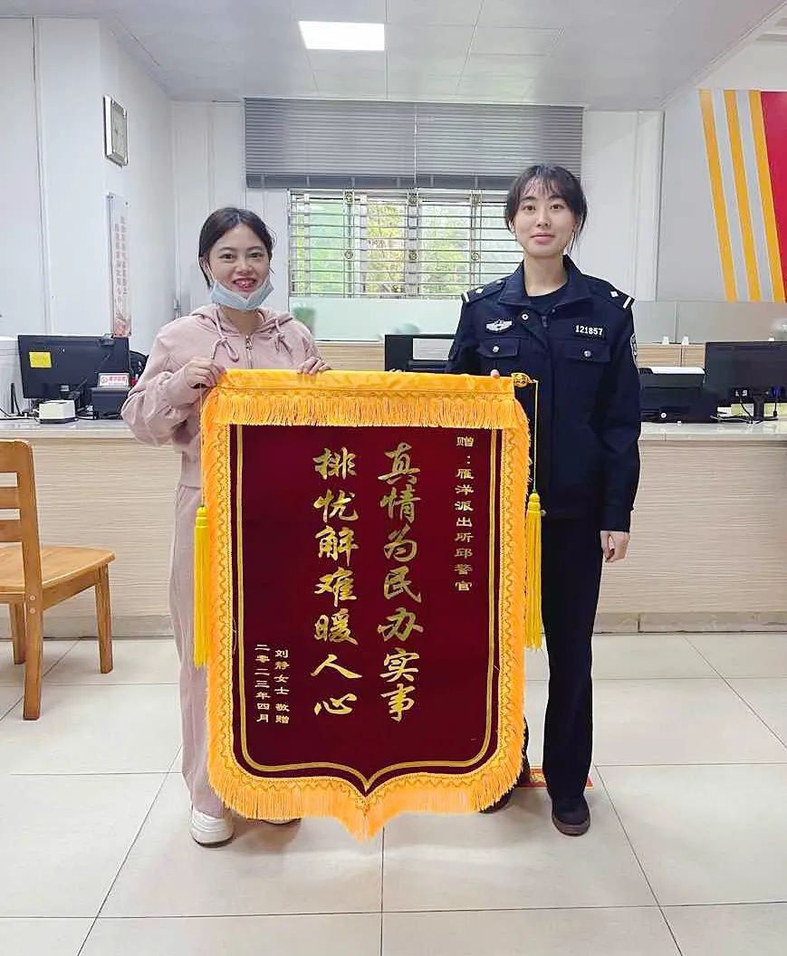 在成功解决孩子户口问题后,刘女士特意制作一面锦旗致谢派出所民警为其解决燃眉之急。