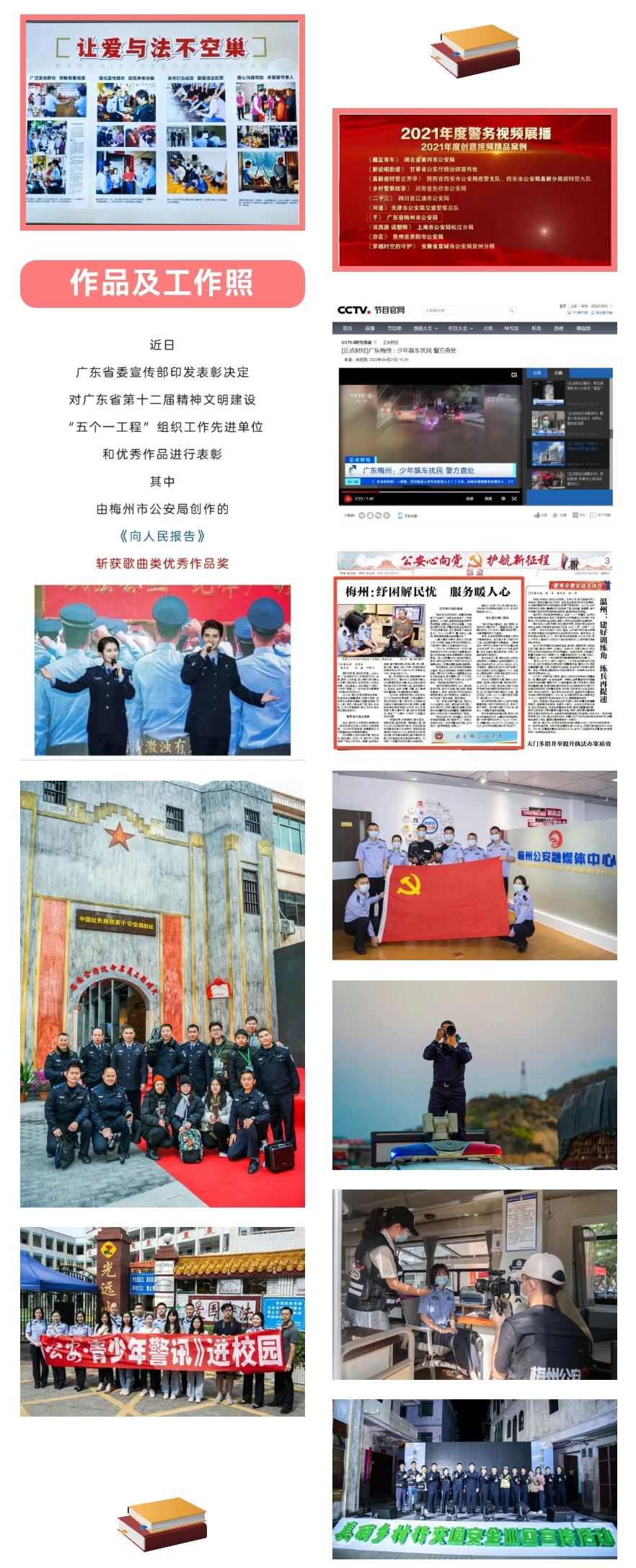 梅州公安融媒体中心以市公安局警察公共关系科和交警法制宣传大队为基础,整合各方力量和资源,积极做好“平安梅州”、《梅州公安》电视专栏、《青少年警讯》等19个宣传平台运营工作;强化与新闻媒体合作,打造多种宣传形式产品,积极回应群众关切,增强公安机关政务透明度,为群众提供丰富的警务资讯和治安动态信息,提升百姓安全防范能力,震慑和预防违法犯罪;特别是针对青少年群体开展“引航青春、守护万家”法治宣传教育系列工程,切实提升群众安全感和满意度。成立两年来,梅州公安融媒体中心创作的一批精品力作获得广东省精神文明建设“五个一工程奖”等诸多奖项。