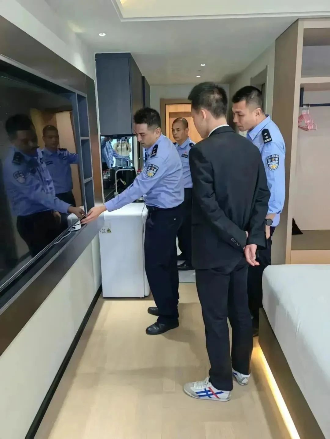 打防并举,防范为先。刑侦大队、治安大队联合到辖区各旅馆、酒店检查前台实名登记情况、未成年人“五必须”落实情况、反诈宣传栏有无张贴反诈海报、弱电机房是否存在架设语音网关设备等情况。检查组要求场所负责人必须严格落实入住人员实名登记及未成年“五必须”规定,加强住房巡查及机房检查,防范不法分子在酒店内部架设语音网关设备。