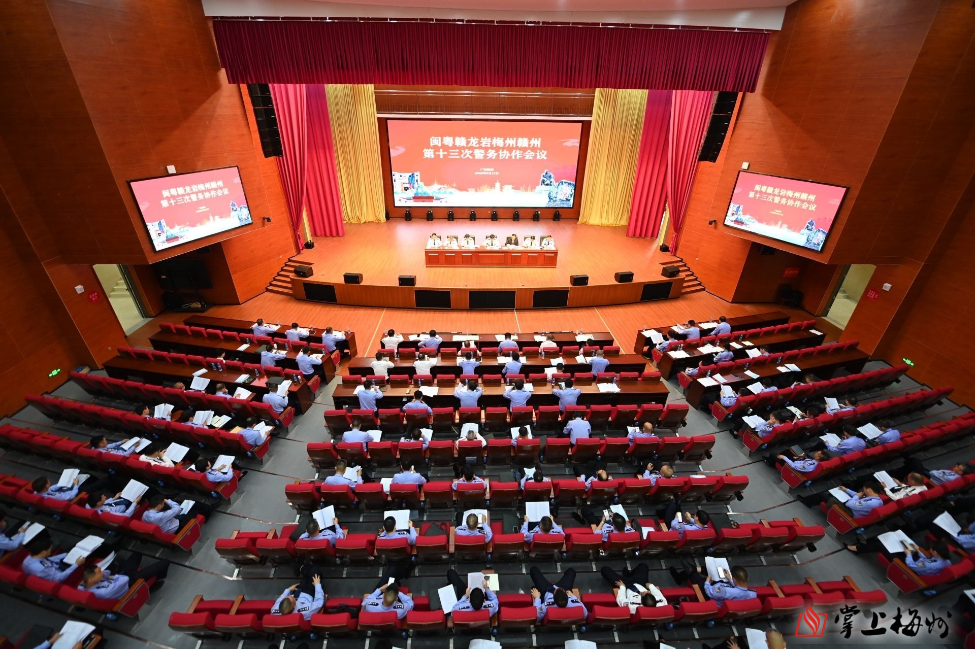 掌上梅州讯 5月12日,闽粤赣龙岩梅州赣州第十三次警务协作会议在梅州市大埔县召开。广东省公安厅党委委员、政治部主任邹泉华莅会指导。梅州市委常委、政法委书记梁维代表梅州市委、市政府致辞。龙岩市政府副市长、市公安局局长许佳,梅州市政府副市长、市公安局局长詹星,赣州市政府副市长、市公安局局长刘志强出席会议。