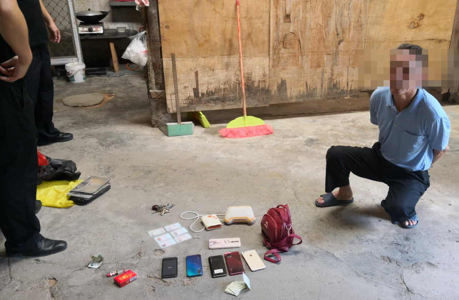 5月3日,盗窃嫌疑人王某光骑着偷来的摩托车流窜至丰顺县汤南、汤坑镇等地,路过无人看守的店铺、民房时,伺机实施入室盗窃,将放在室内的手机、皮包、现金等贵重物品偷走。次日,丰顺警方在王某光揭阳家中将其抓获归案,并现场缴获一批被盗赃物。