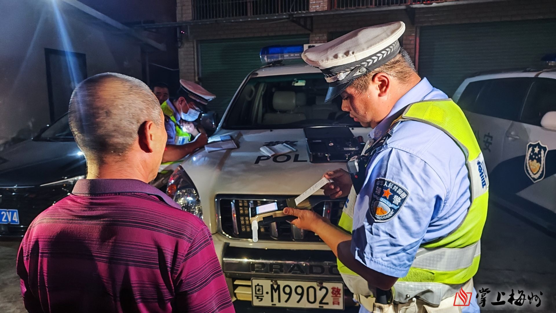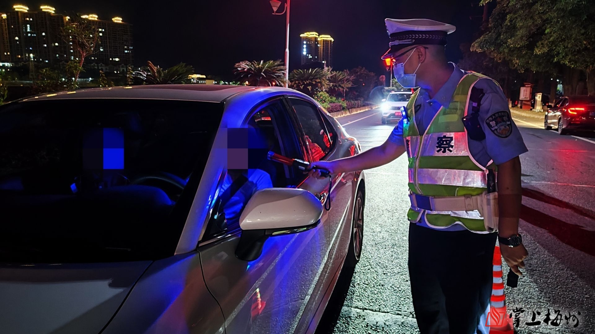 6月3日晚上,梅县区公安局交警大队联合蕉岭县公安局交警大队,在蕉岭县桃源东路设立临时执勤点,对过往车辆的驾驶员逐个进行酒精快速检测,按照逢车必查、逢疑必检、逢违必究原则,加大对酒驾醉驾、无牌无证、不系安全带等交通违法行为的查处力度。