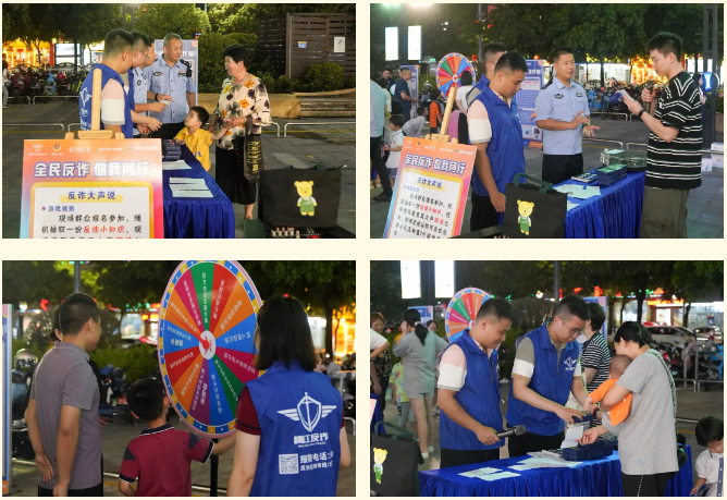 活动中,民警、志愿者通过知识竞答、趣味游戏、拍照打卡、发放反诈小礼品等形式,向广大群众介绍刷单返利诈骗、冒充公检法诈骗、虚假征信诈骗等陷阱,提醒大家不要轻信陌生人的电话和短信,不要向陌生人透露个人信息,防范不法分子利用电话、网络等诱骗群众进行银行卡转账,骗取钱财。
