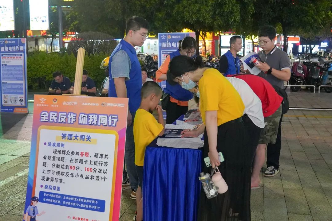 6月19日,梅州市公安局梅江分局以“你我同心,反诈同行”广东百日宣传活动为抓手,在梅江区万达广场组织开展“全民反诈,你我同行”宣传活动,旨在提高广大群众防骗、识骗能力,进一步宣传防范电信网络诈骗的相关法律和知识,从源头遏制电信网络诈骗案件发案势头。
