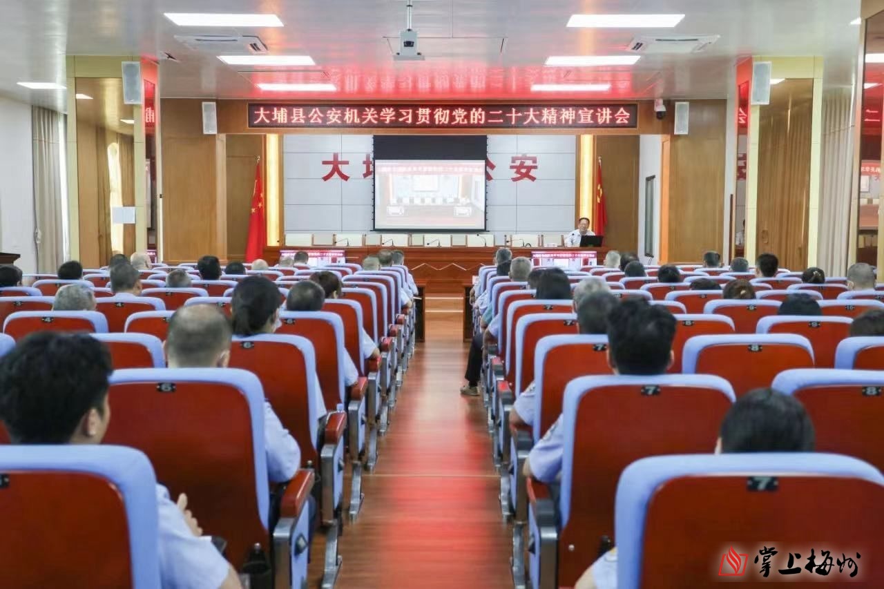 6月29日,大埔县公安局邀请县委宣讲团成员、县委党校副校长郭文招到局开展《学习贯彻党的二十大精神,为老区苏区全面振兴发展贡献公安力量》主题宣讲,详细解读了党的二十大主题及意义、党的二十大报告主要内容、坚持全面依法治国推进法治中国建设,为广大民辅警更好地学习贯彻党的二十大精神增添了丰富的诠释。