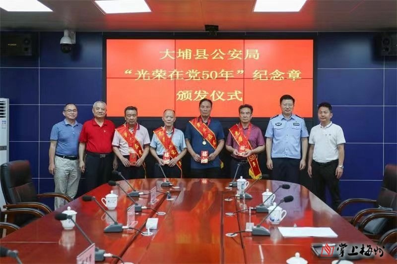 6月26日,大埔县公安局举行“光荣在党50年”纪念章颁发仪式。仪式上,观看了县局高质量发展视频汇报片,现场向老党员们颁发了“光荣在党50年”纪念章。老党员们畅谈了在党50年的体会,作为大埔公安曾经的一份子,欣喜地感受到新的变化,对大埔公安近期取得的工作和建设成效感到无比光荣和自豪。将始终坚定理想信念、永葆本色,始终听党话、跟党走、感党恩,最大限度地发挥党员余热。