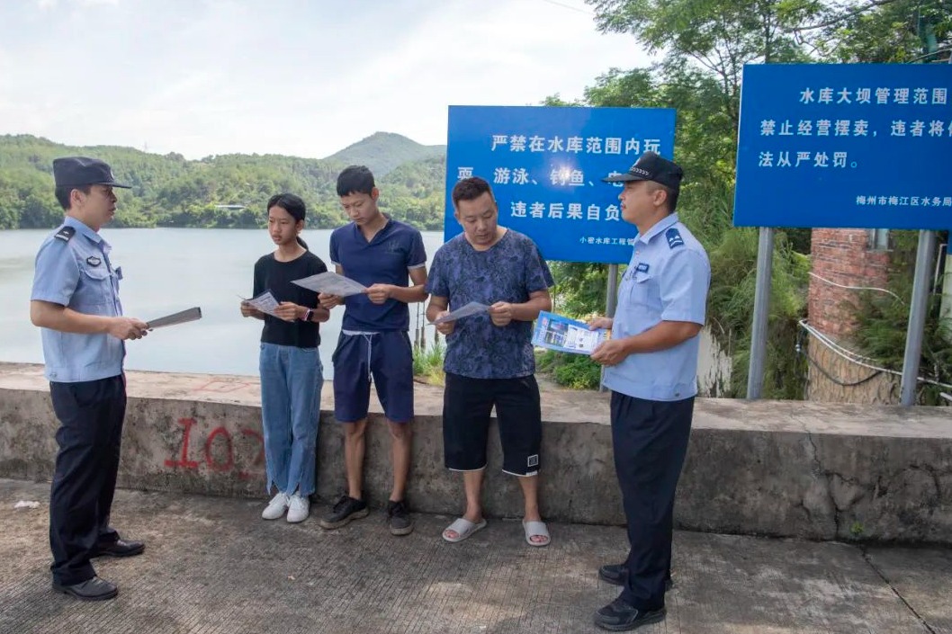 当前,正值盛夏高温季节,汛期降雨强度加大,又临近学生暑期放假,溺水事件进入易发、高发期。为全面做好防溺水工作,严防溺水事故发生,梅州市公安局梅江分局坚持“以查促防”、“以防促安”,深入辖区重点水域开展水域周边隐患排查、巡逻防控和安全宣教工作,做实做细各项防溺水安全检查工作,坚决筑牢防溺水安全防线。