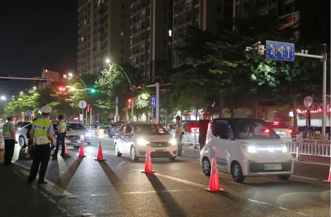 突出显性用警,落实见警察、见警车、见警灯“三见”措施,实施定点驻巡、夜间临查临检等措施,针对酒驾醉驾、无牌无证交通违法行为开展整治,同时对过往的车辆、人员进行盘查,严查严处各类交通违法行为,全力提升全区见警率、管事率和震慑力。