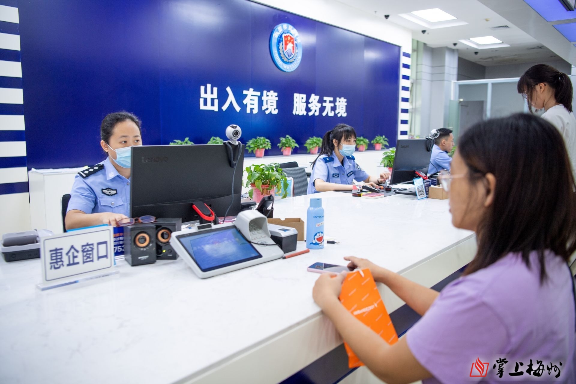 市公安局出入境接待大厅开设“惠企窗口”,为企业提供便捷高效服务。(张劲夫 摄)