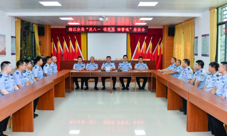 为凝聚警心、激励斗志,引领广大退役军人民警辅警在新征程上再立新功,在中国人民解放军建军96周年即将来临之际,梅江公安举行庆“八一”参观革命教育基地暨交流座谈会。梅江分局党委副书记、政委叶聪及全局21名退役军人代表参加活动及座谈,梅江分局党委委员、副局长黄逢浩主持活动。