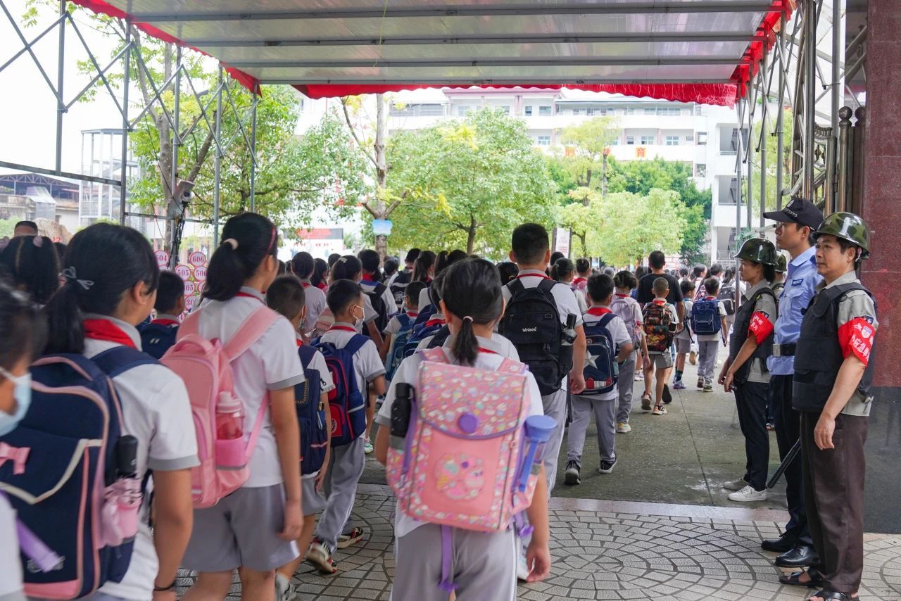 9月4日7时许,梅江辖区各中小学、幼儿园学生陆续返校报到,梅江公安“护学岗”提前到岗到位,联合学校保卫干部、保安员、教职工、志愿者等群防群治力量,充分发挥校园最小应急单元作用,共同维持新学期开学返校秩序。