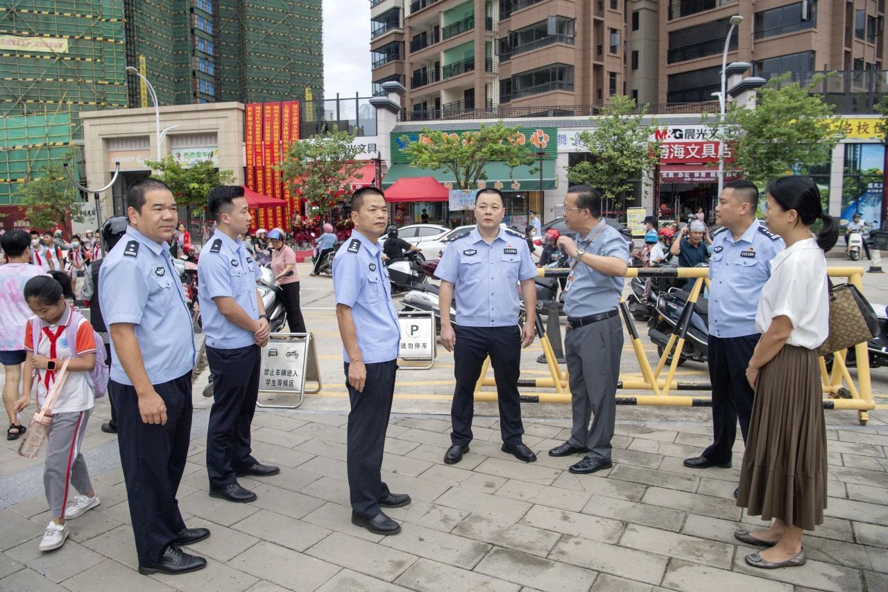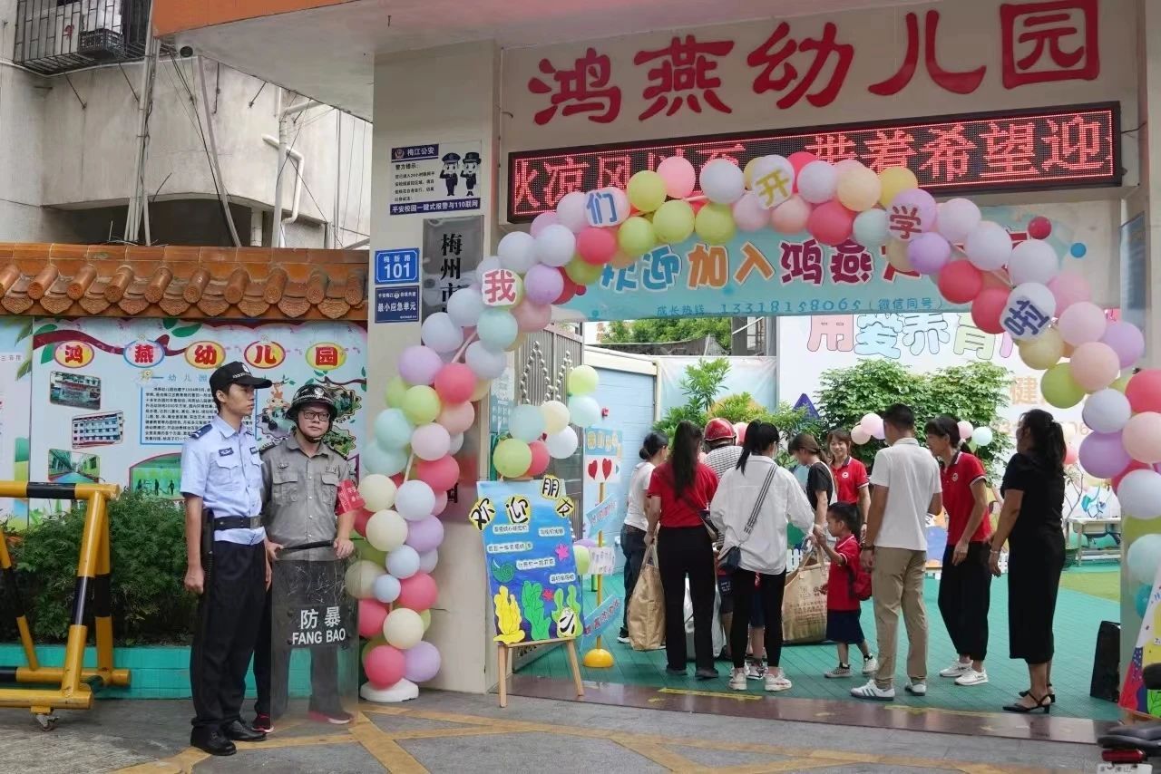 为确保2023年秋季梅江区各中小学、幼儿园安全有序开学,梅州市公安局梅江分局结合辖区各学校及周边环境特点,动态优化警力部署,以“定点值守”和 “机动巡查”相结合的方式,实行校园“高峰勤务”和“护学岗”机制,落实落细各项护学安保措施,全力为广大师生安全返校、顺利开学保驾护航。
