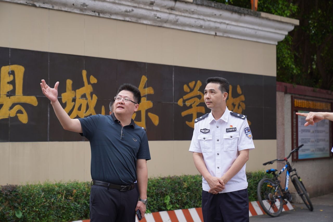 9月4日,副县长、县公安局党委书记、局长吴东海率队到辖区学校督导“开学季”校园安保工作,在蕉岭县城东学校,吴东海同志对校园“一键报警系统”进行了测试,详细了解了学校进出校门登记、校园安保设施及人员配备情况,并与学校负责人就“护学岗”落实及工作机制进行了交流。
