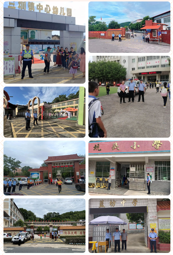 执勤民辅警采取定岗定责的方式,在上学、放学高峰时段,科学合理安排执勤时段、位置,全面加强对校园周边环境的巡逻防控力度,排查可疑人、车,确保“见警灯、见警车、见警察”,切实提高见警率和管事率,保障学生安全,营造安全有序的校园环境。