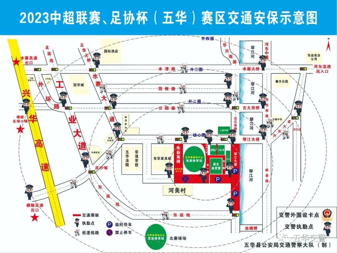 2023年9月16日晚上,在五华县水寨镇五华奥林匹克体育中心举行2023中国平安中国足球协会超级联赛梅州(五华)赛区比赛,为确保赛事期间环奥林匹克体育中心周边道路安全畅通有序,五华县公安局交警大队根据《中华人民共和国道路交通安全法》第三十九条规定,届时将对环奥林匹克体育中心周边道路进行交通管制。请广大市民给予理解和支持,服从交通民警和工作人员指挥,并提前做好绕行线路及乘坐公交车或徒步前来观看赛事的计划安排,以免影响出行。现将有关事项通告如下: