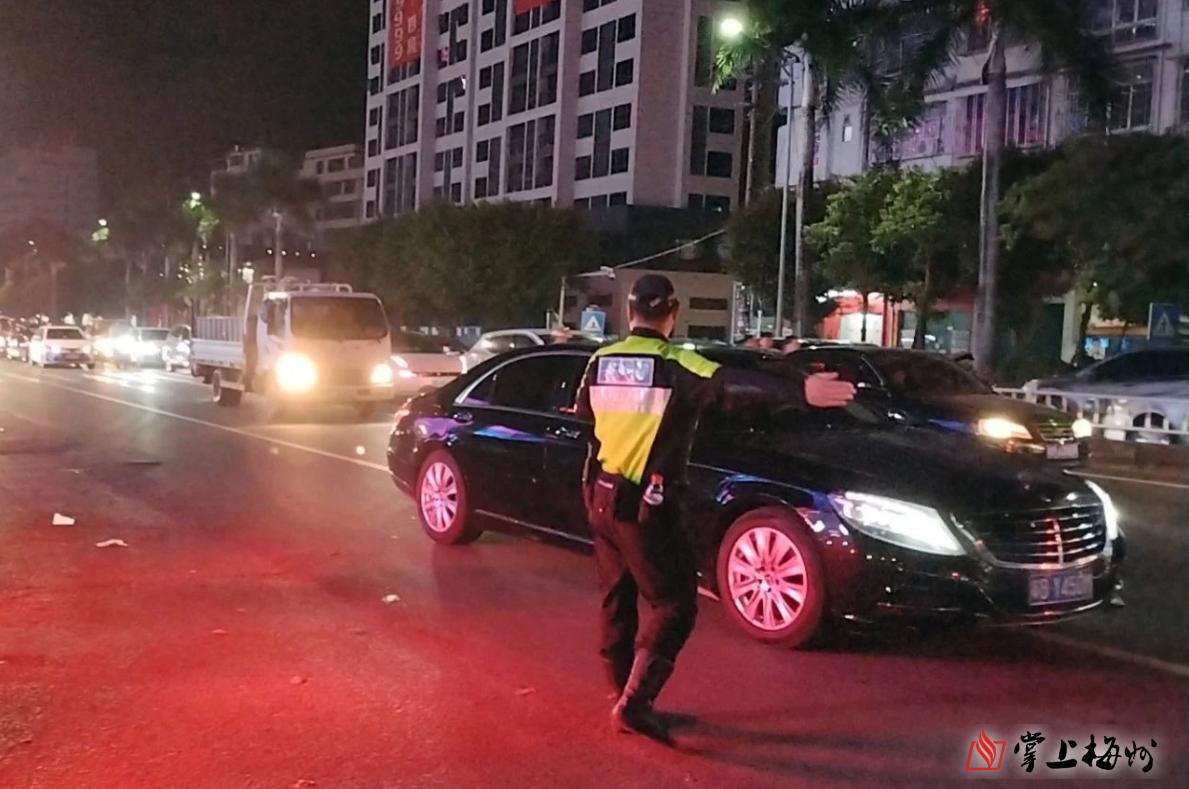 掌上梅州讯 双节假期期间,我市各高速路段及市县各主干道都迎来了较大的交通流。梅州交警坚守在全市各主要街头组织疏导交通,维护交通秩序,全力营造和谐有序安全的道路交通环境。
